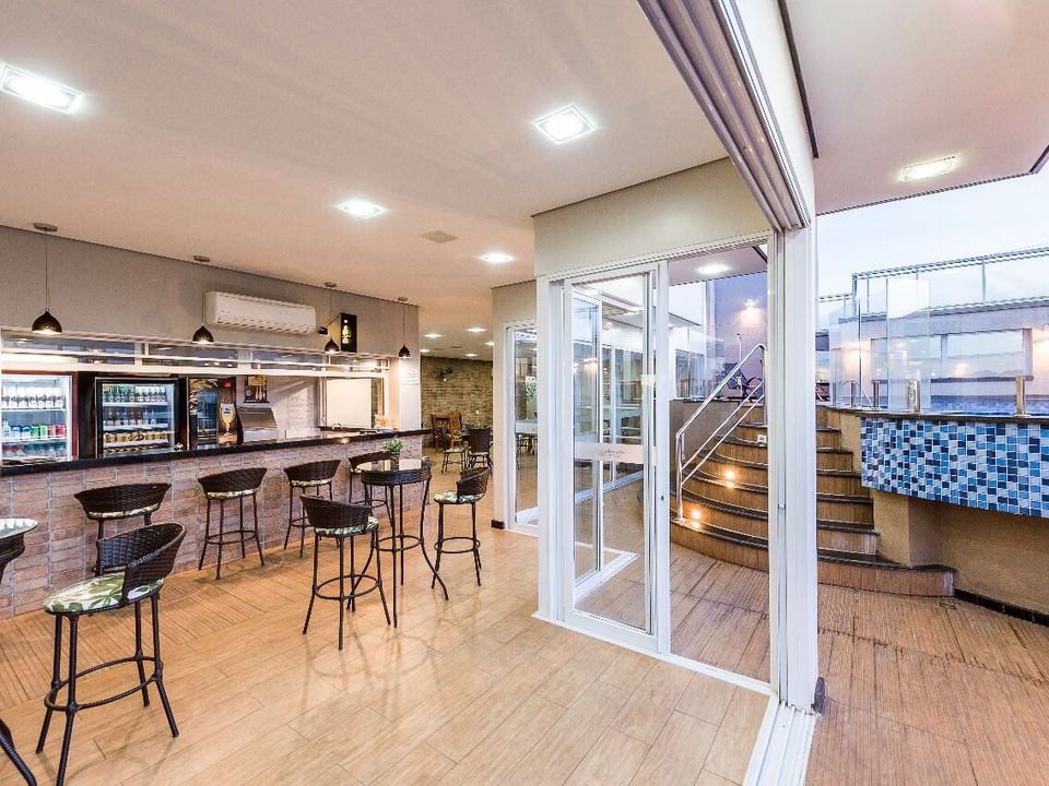 Nossa estrutura conta com 109 apartamentos completos, 04 suítes máster e um amplo ambiente de lazer com piscina, bar e academia.