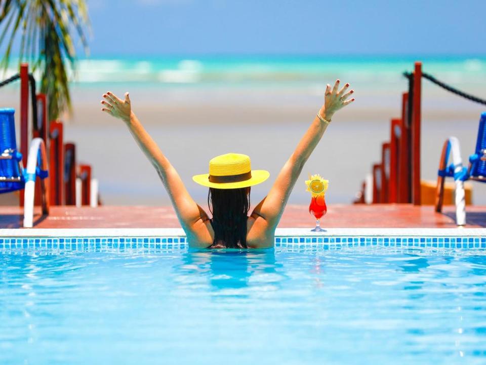 • Não é permitido entrar na piscina com, roupas que não sejam de banho, filtro solar e bronzeadores, bem como a utilização de qualquer tipo de objeto de vidro que possa quebrar, visando à qualidade da água e a segurança dos hóspedes.