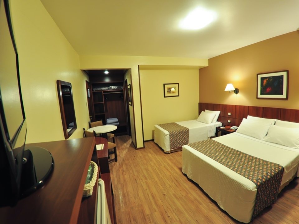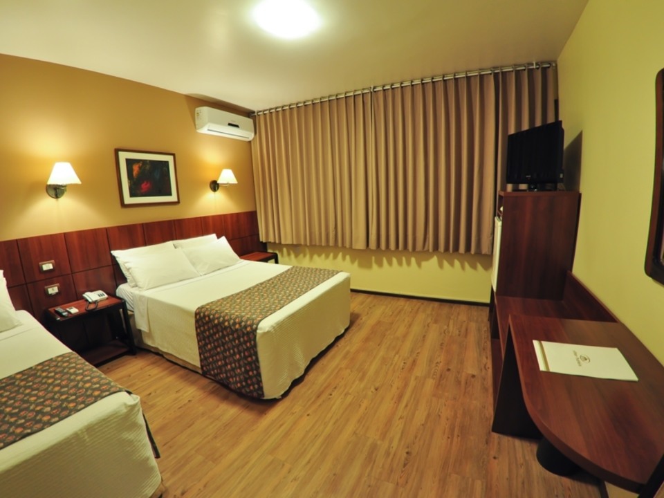 Nossas acomodações possuem ar condicionado split inverter quente/frio, televisão LCD a cabo, internet Wi-Fi gratuita, cofre, banheiros privativos, amenidades para banho, secador de cabelo, piso laminado antialérgico, telefone, frigobar, roupeiro, box vidro temperado, fechadura eletrônica.
