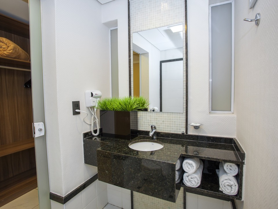 Hospede-se com todo conforto que você merece. Academia, estacionamento amplo com vagas cobertas e seguro, room service, agendamento de táxi personalizado, lavanderia, centro de convenções, sala business, guarda bagagens e muito mais. E claro, aqui seu pet é bem vindo! Nosso hotel aceita a permanência do seu animal de estimação de pequeno porte.