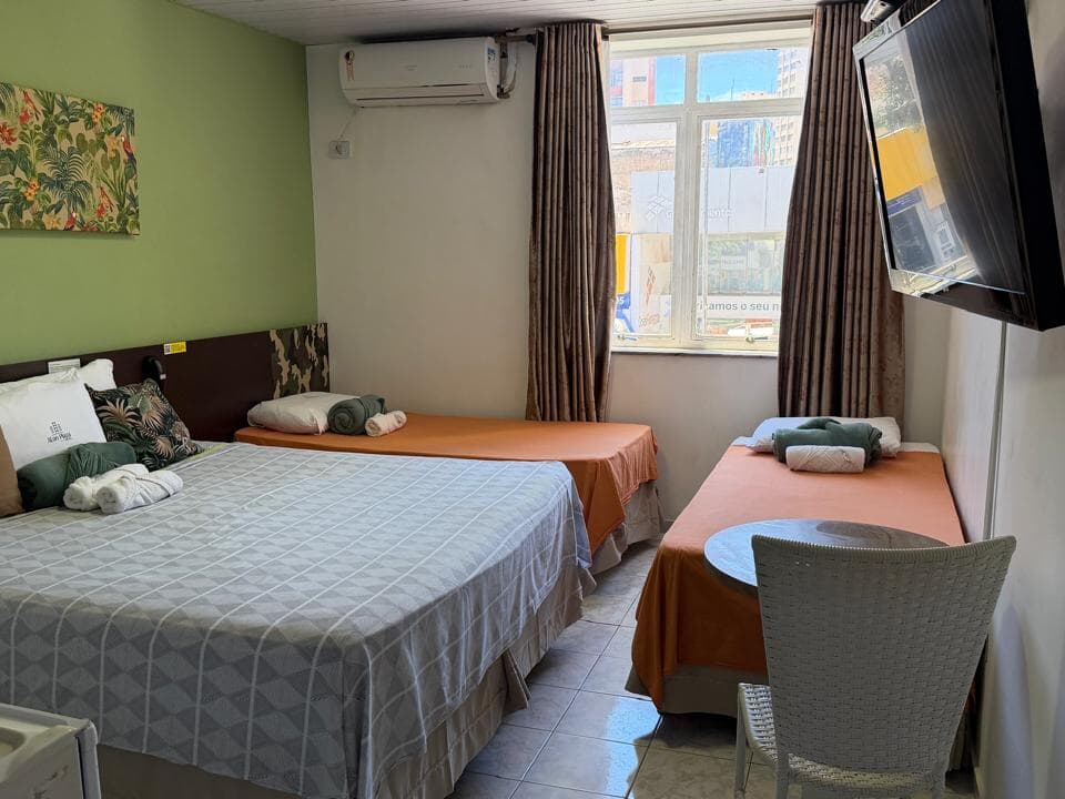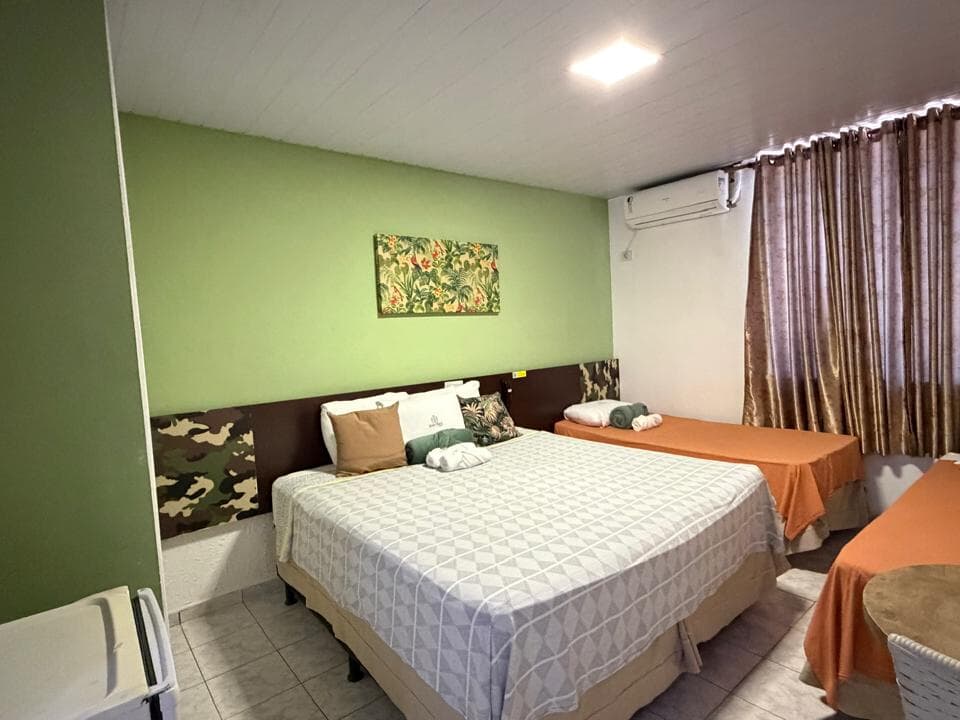 A inclusão de cama extra deve ser solicitada antecipadamente ou diretamente à equipe de recepção, com acréscimo de R$ 40,00 por diária.