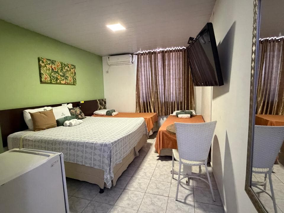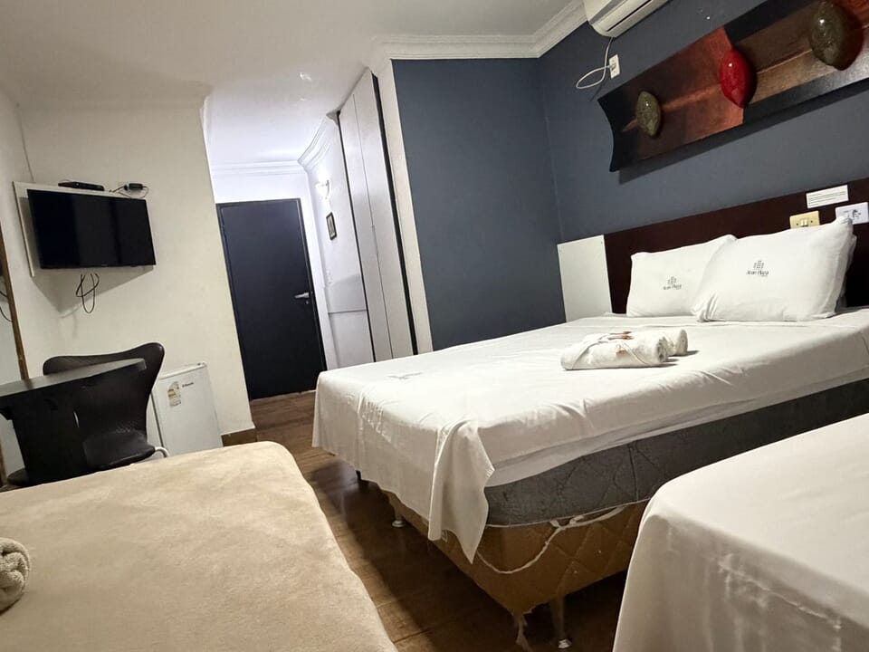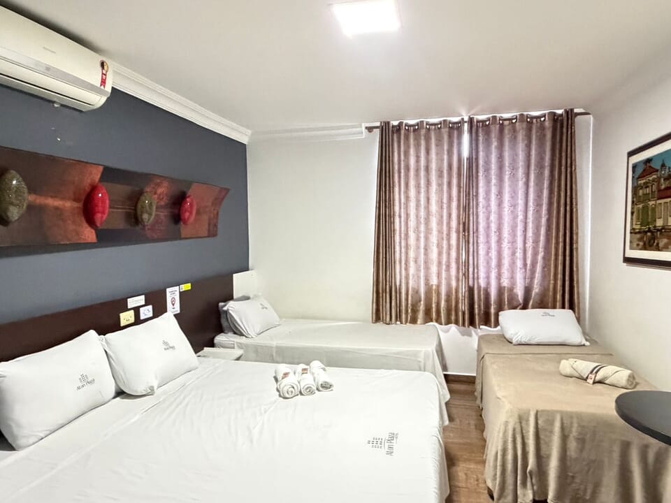 Todos os apartamentos do hotel são da categoria Standard, planejados para proporcionar conforto e praticidade. As acomodações são equipadas com ar-condicionado, TV a cabo, frigobar e Wi-Fi gratuito e ilimitado em todas as áreas do hotel, garantindo uma estada completa e agradável.