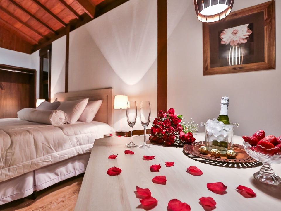 Para que sua estadia fique ainda melhor, você pode solicitar com antecedência uma de nossas produções românticas, proporcionando uma noite inesquecível ao seu amor! Por favor consultar itens e valores.