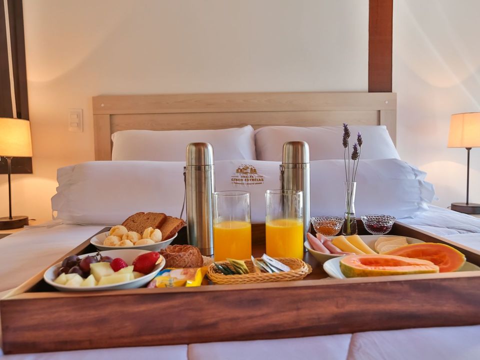 • Café da manhã servido das 09:00 às 11:00 horas no chalé;