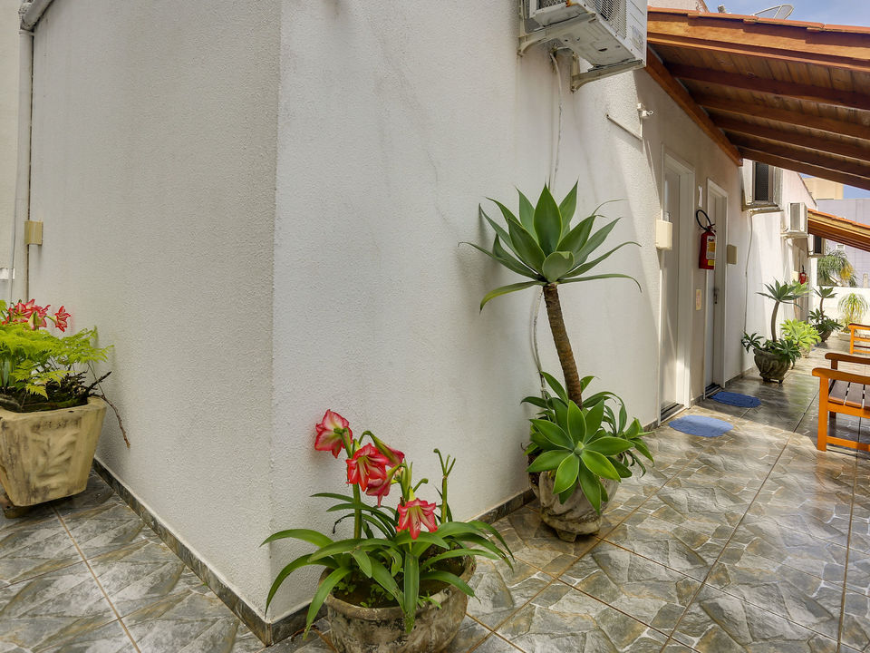 Oferecemos roupa de cama e banho, estacionamento rotativo com duas fileiras de carro um atrás do outro, internet wireless, café da manhã servido no quarto, limpeza diária e deck com churrasqueira.