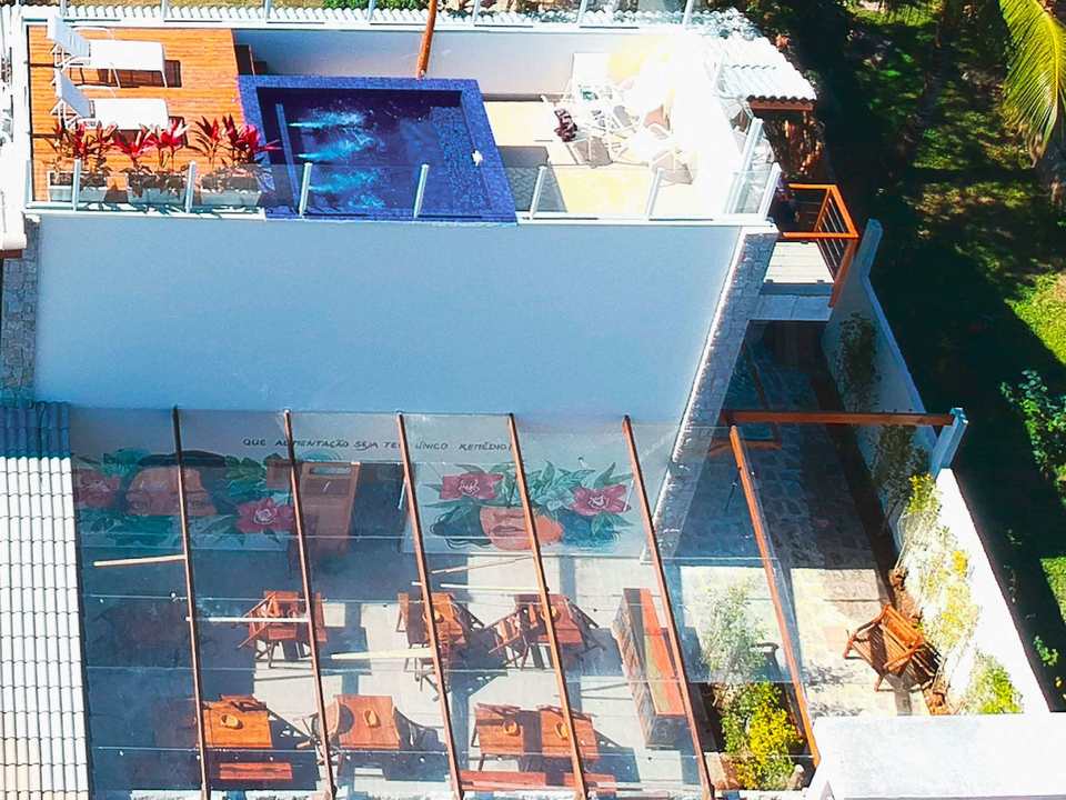 Temos coworking, SPA, sala de práticas com aulas de yoga diariamente, rooftop com piscina e vista para o mar, restaurante com alimentação saudável, onde é servido o café da manhã, apenas e fomos eleitos o hotel mais sustentável de Ilhabela.