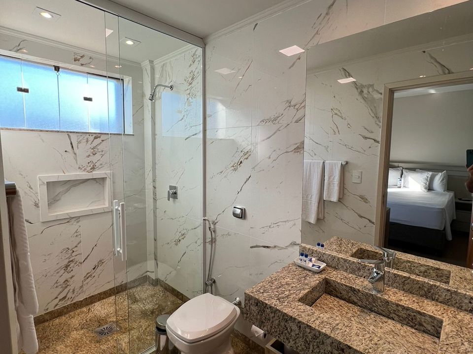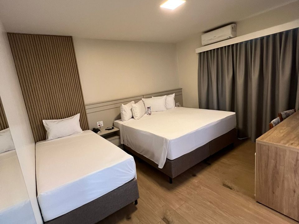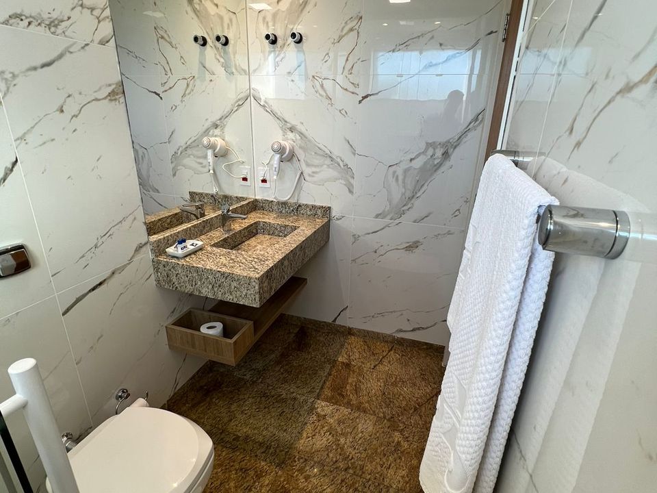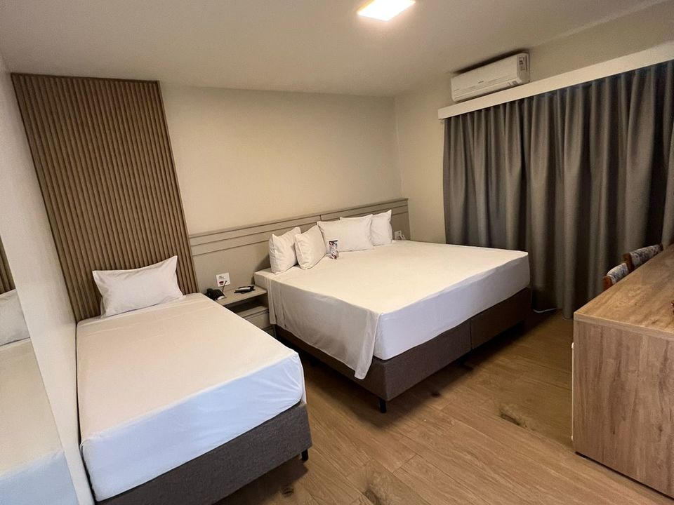 Os quartos são espaçosos, apresentam um design moderno e oferecem ar condicionado split, tv a cabo digital, ducha, secador de cabelo e mesa para trabalho.