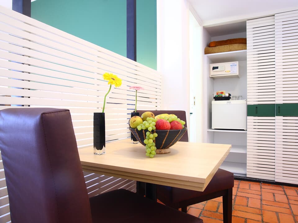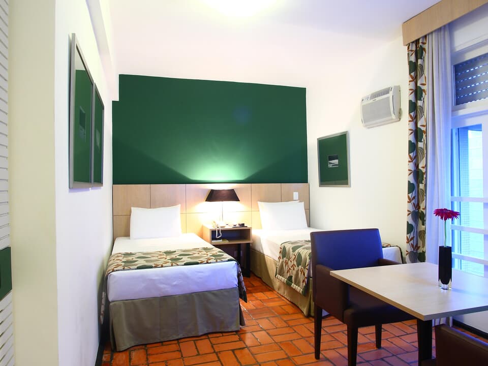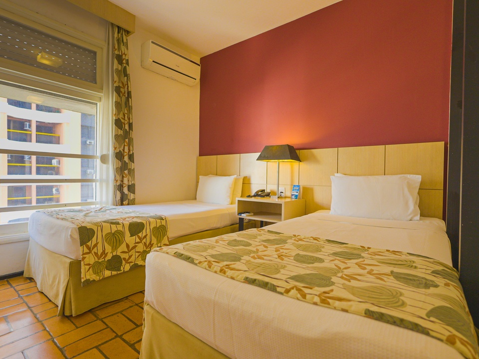 Os quartos são modernos e confortáveis, equipados com TV LCD 43" Smart e com canais a cabo, ar-condicionado, frigobar e cofre de segurança, oferecendo tudo o que é necessário para o seu descanso com total tranquilidade.