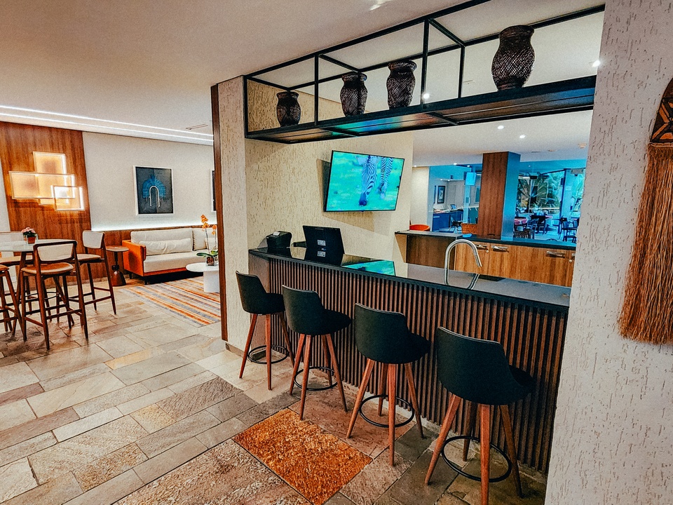 Sua estrutura moderna e acolhedora proporciona uma experiência única para toda a família. Os hóspedes podem desfrutar de uma piscina climatizada, ideal para relaxar em qualquer estação, além de sauna, academia bem equipada, sala de jogos, espaço kids, e um delicioso bar à beira da piscina, perfeito para momentos de descontração. O lobby bar oferece um ambiente aconchegante para um drink ou um café em boa companhia.