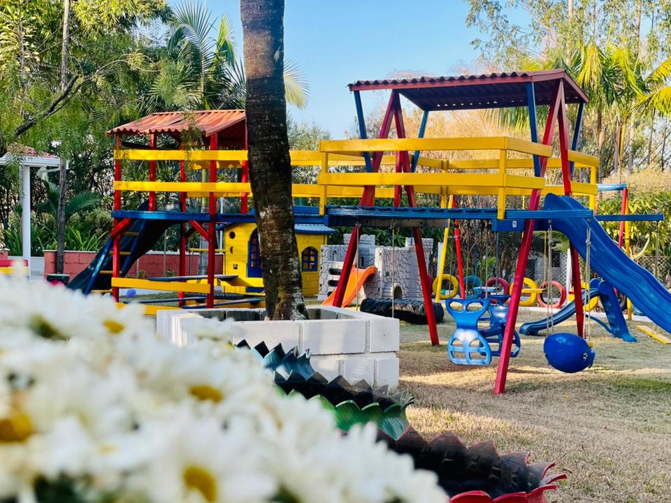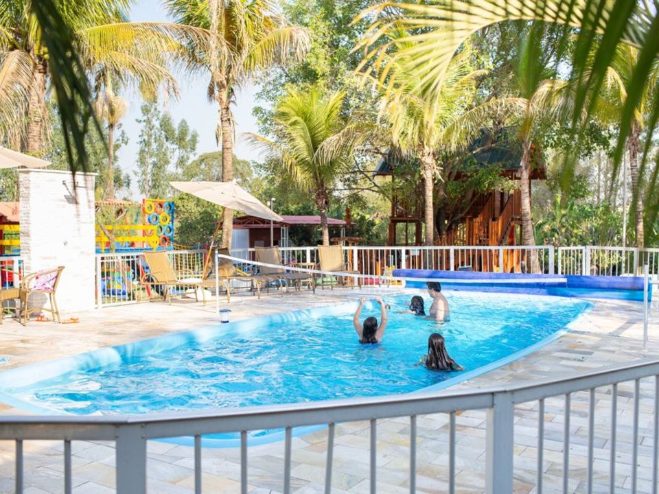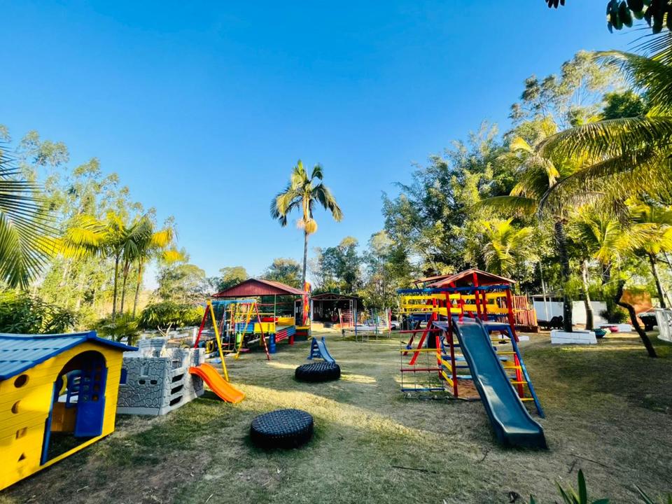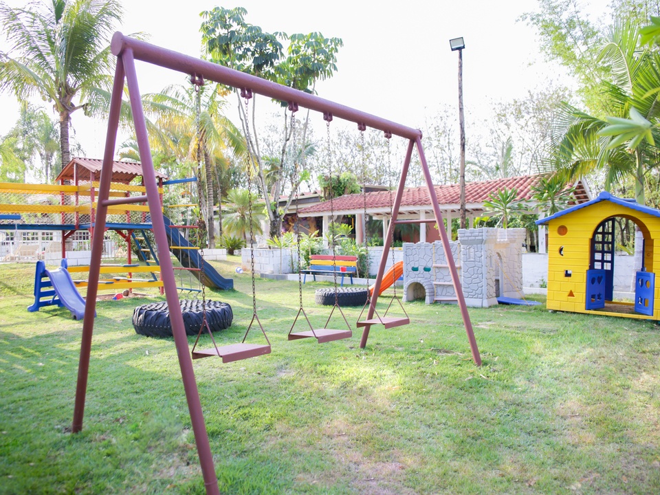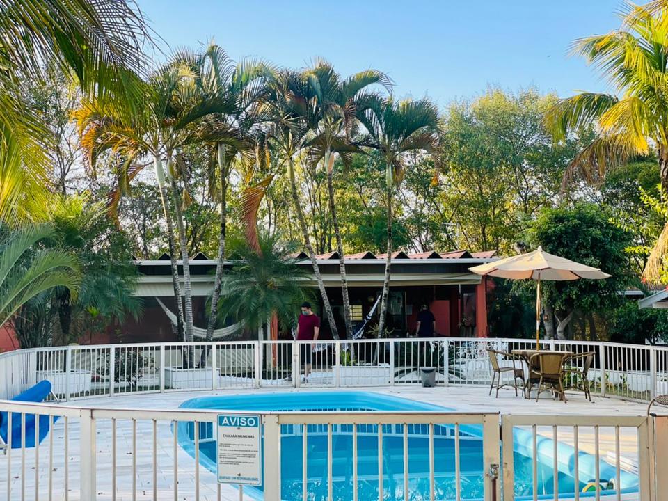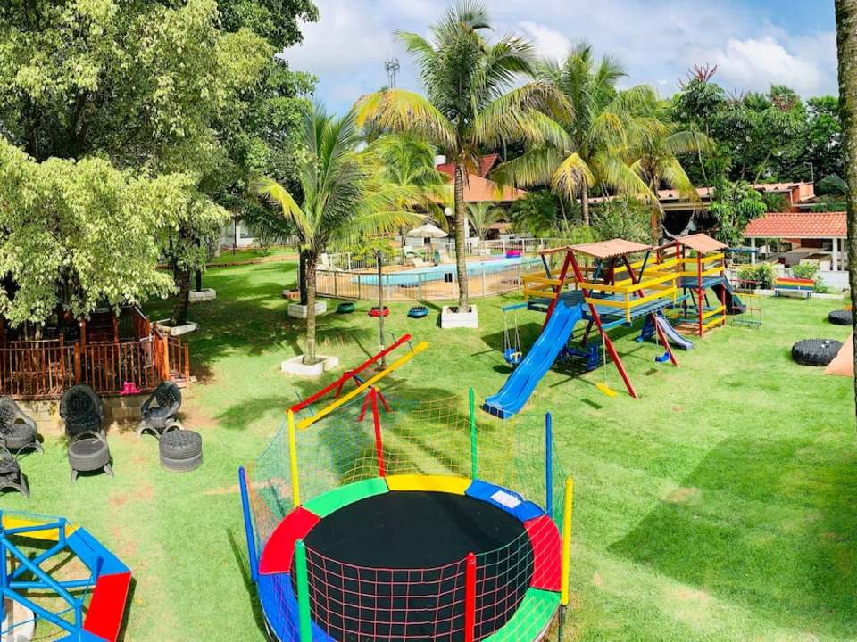 A Chácara das Palmeiras tem piscina, churrasqueira com forno de pizza, campo de futebol gramado, pomar, piscina, mini-floresta, salão de jogos, área playkids, casinha na árvore para as crianças e um grande espaço gramado.