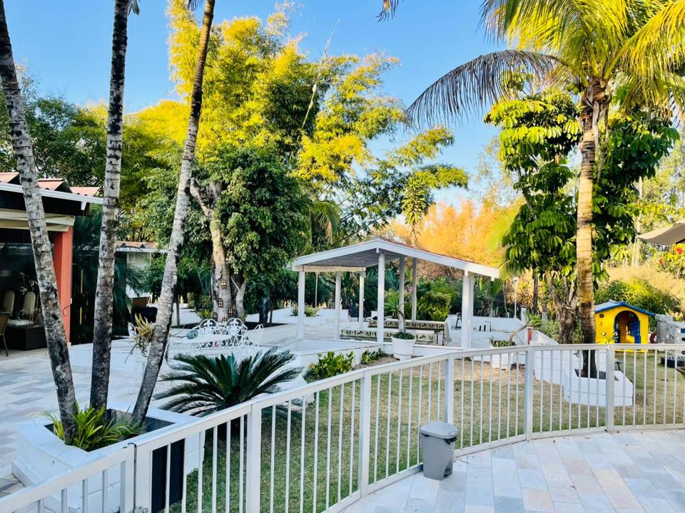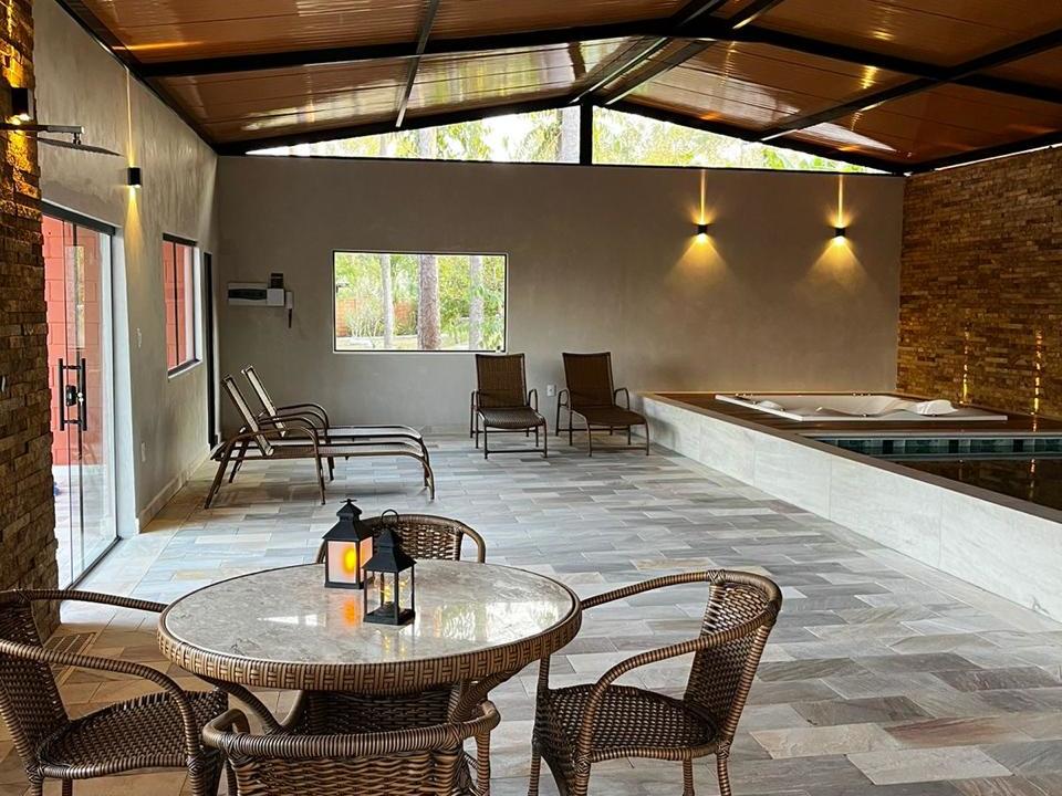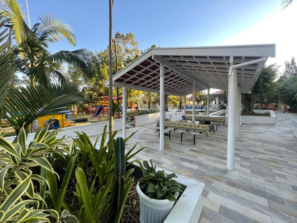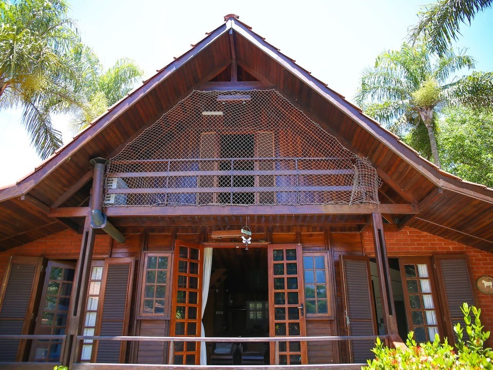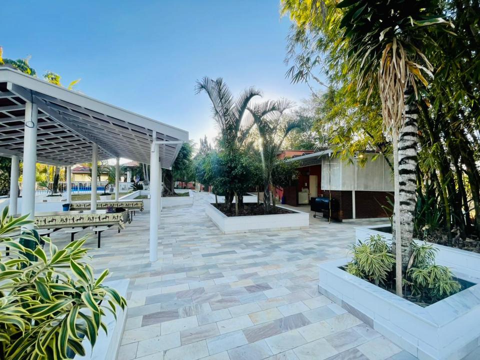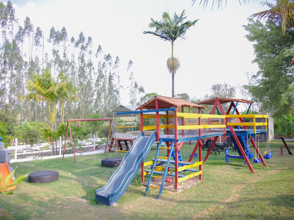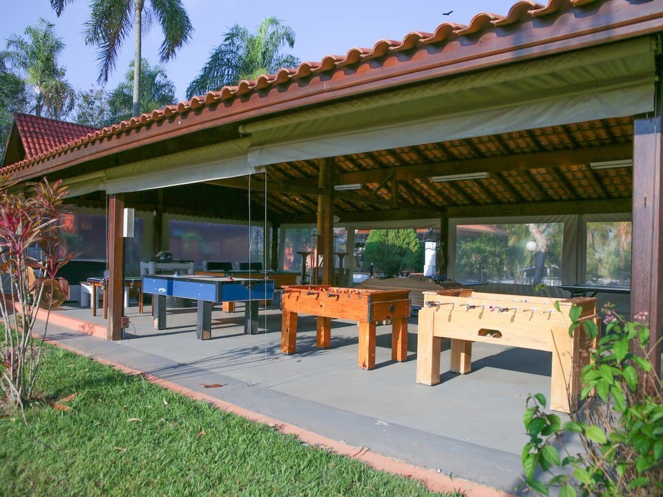 A Chácara das Palmeiras tem piscina, churrasqueira com forno de pizza, campo de futebol gramado, pomar, piscina, mini-floresta, salão de jogos, área playkids, casinha na árvore para as crianças e um grande espaço gramado.