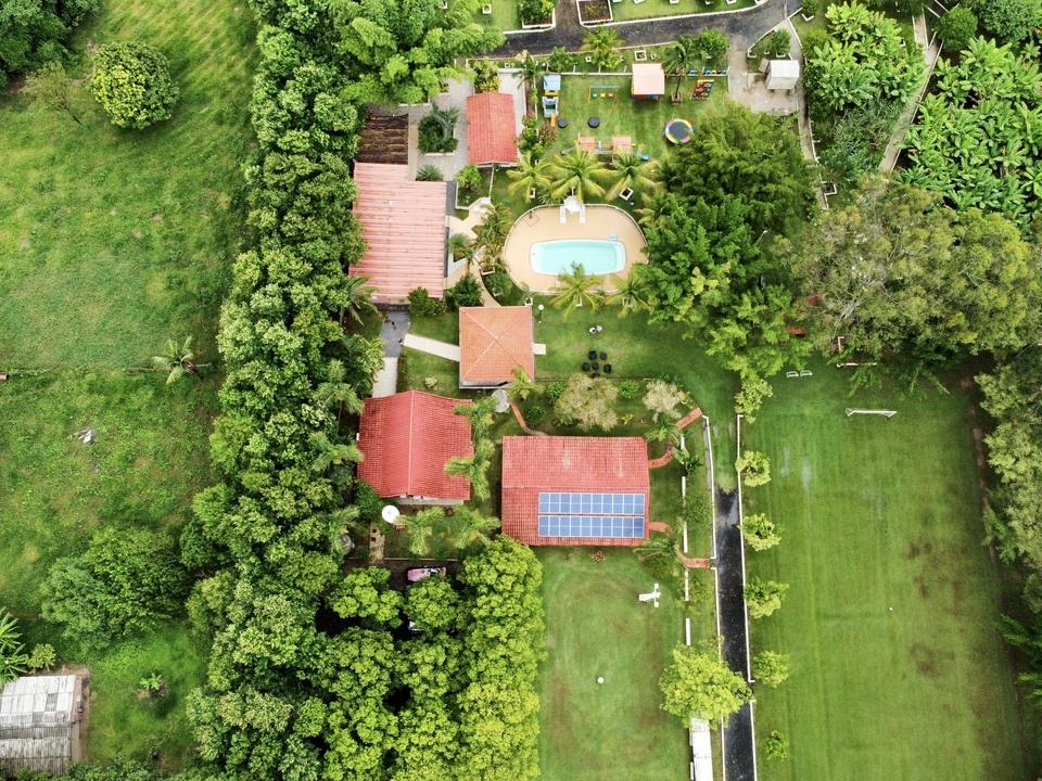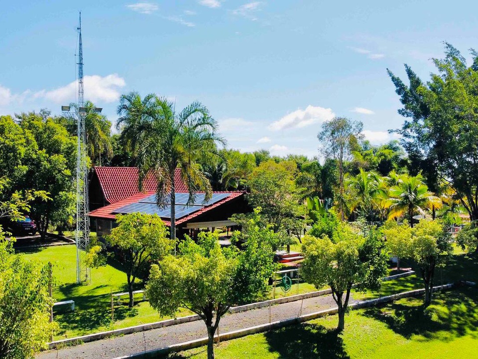 O local é fornecido de energia solar e água de poço artesiano documentado. Recomendamos que traga repelentes. Temos toda a estrutura para receber famílias com muito conforto e ampla área verde em um terreno de 24 mil m².
