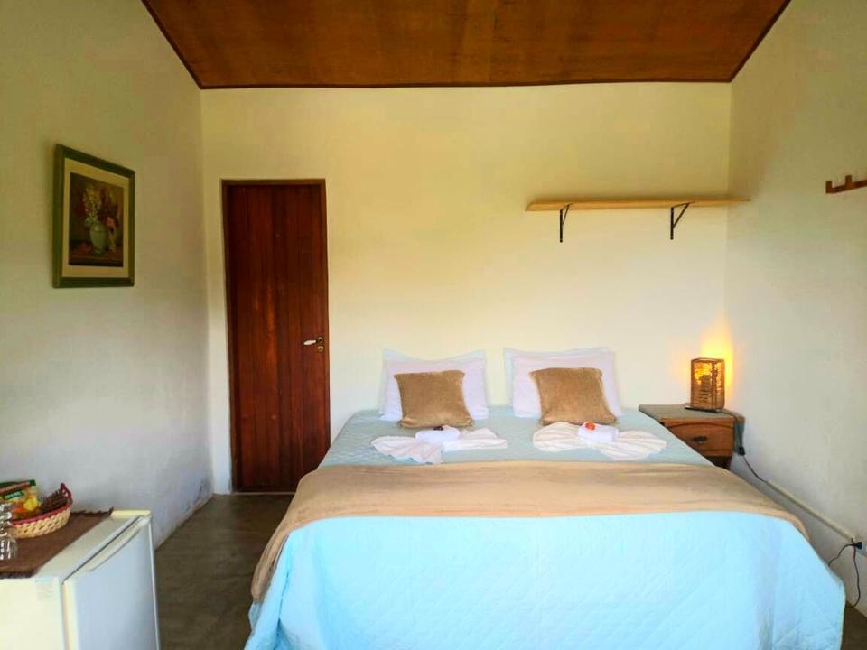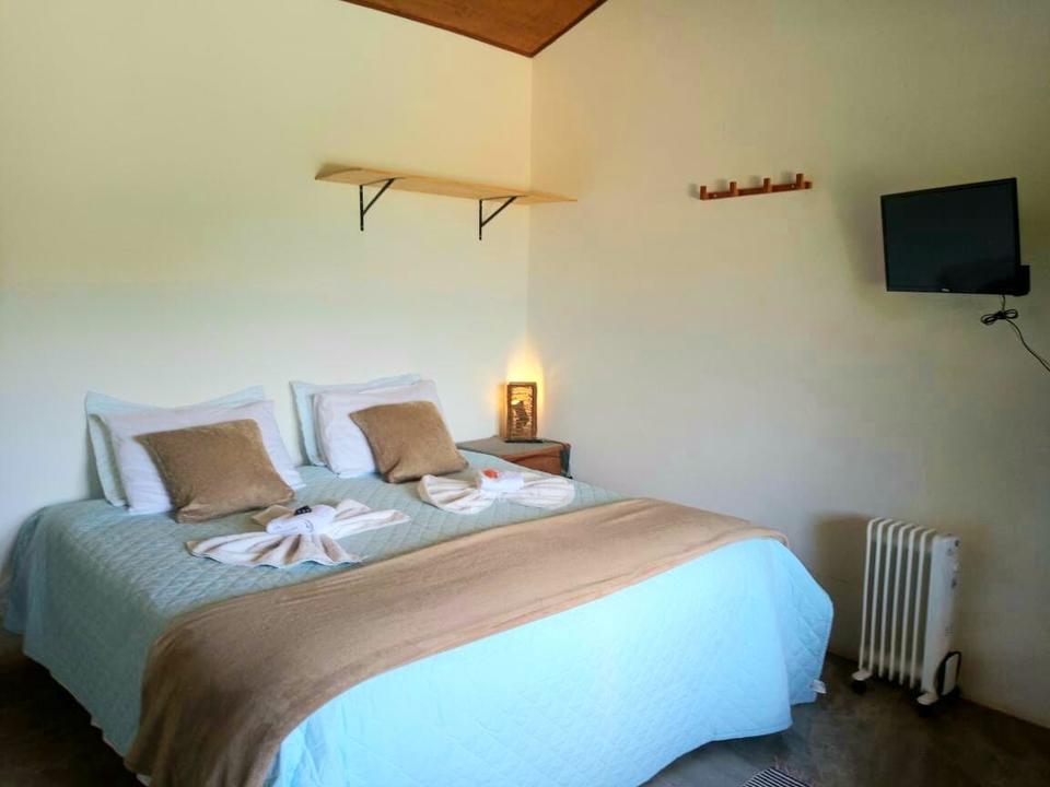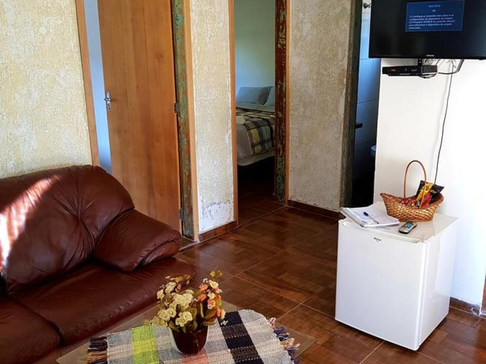 Aconchegantes chalés rústicos com banheiro privativo, frigobar, TV à cabo e varanda.