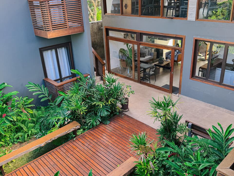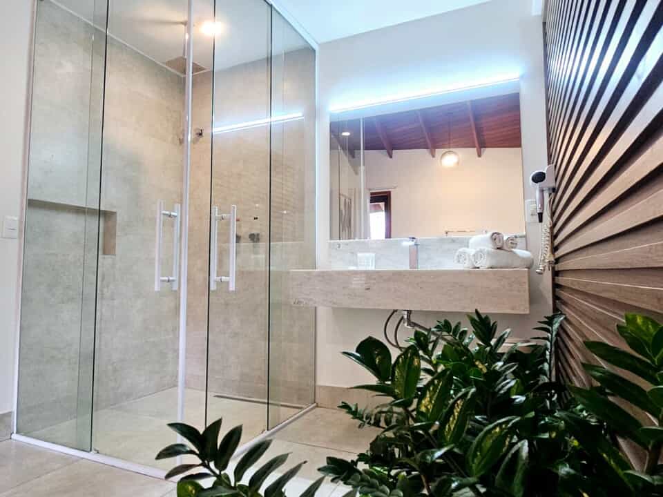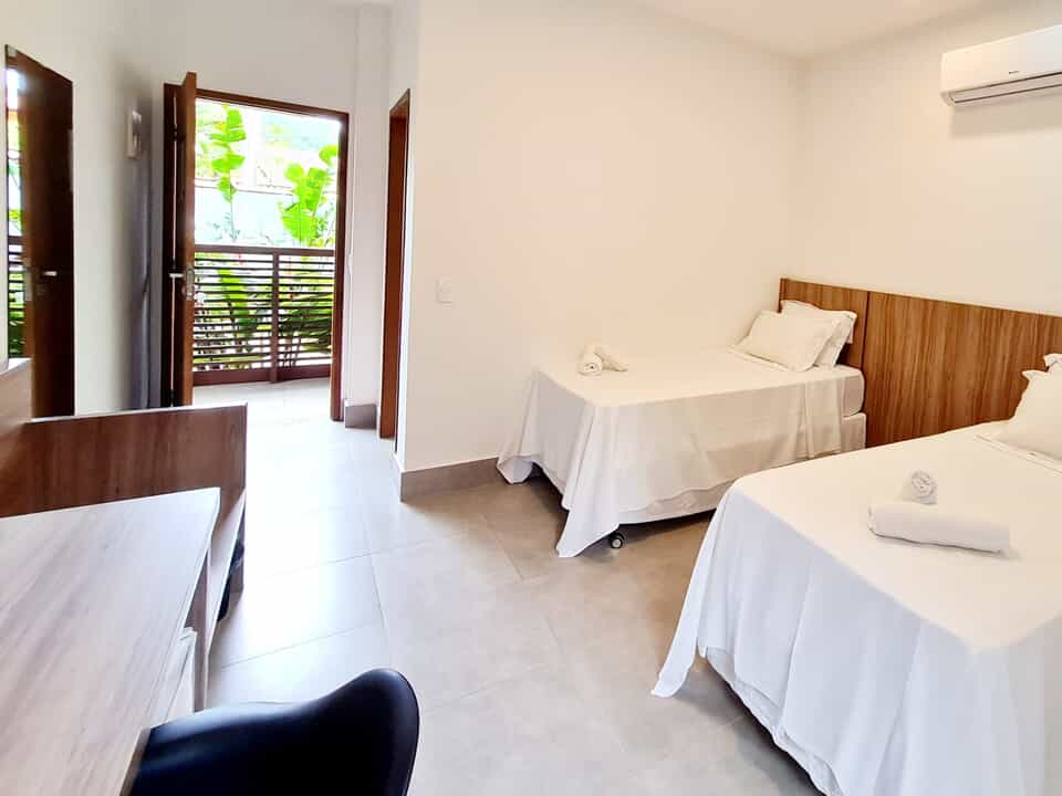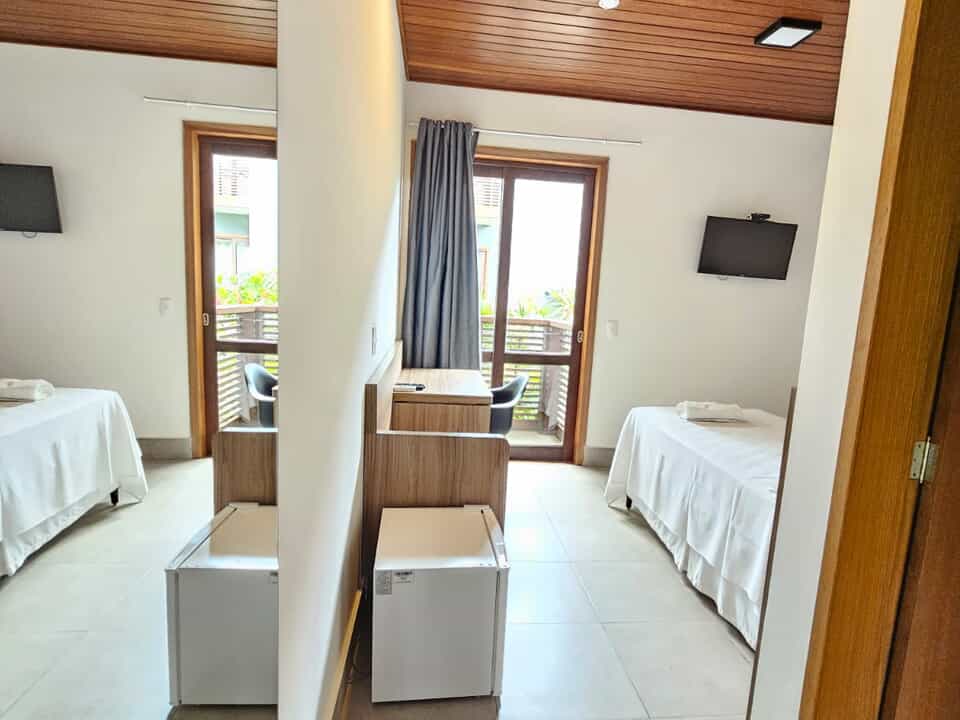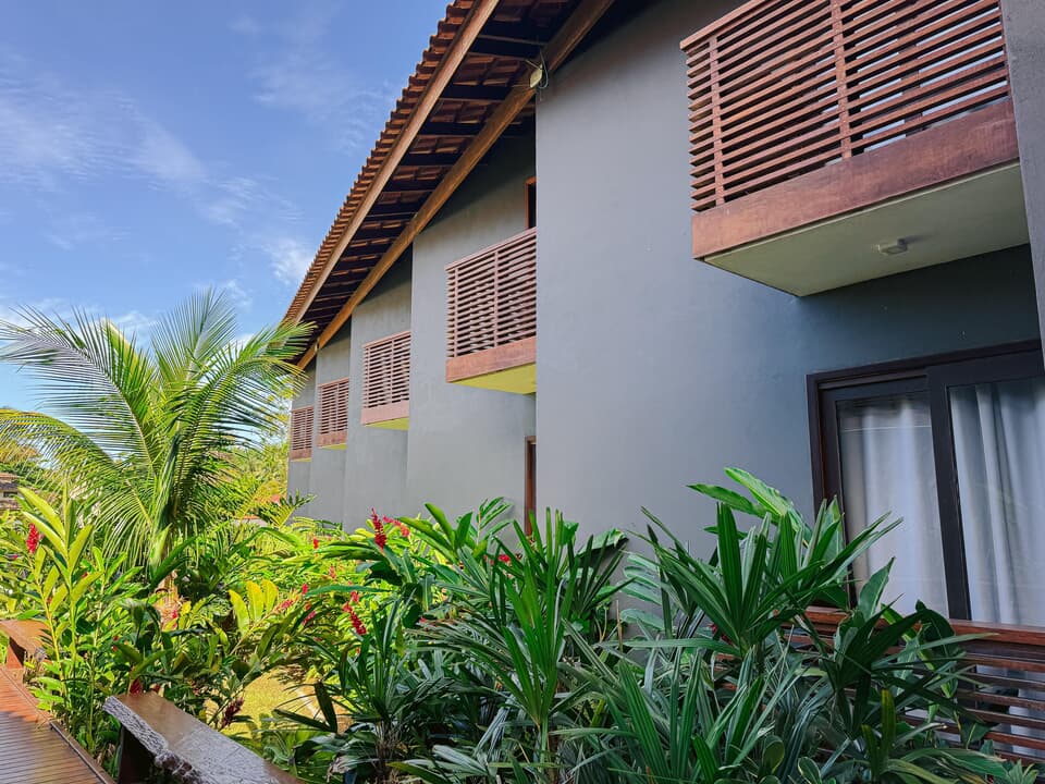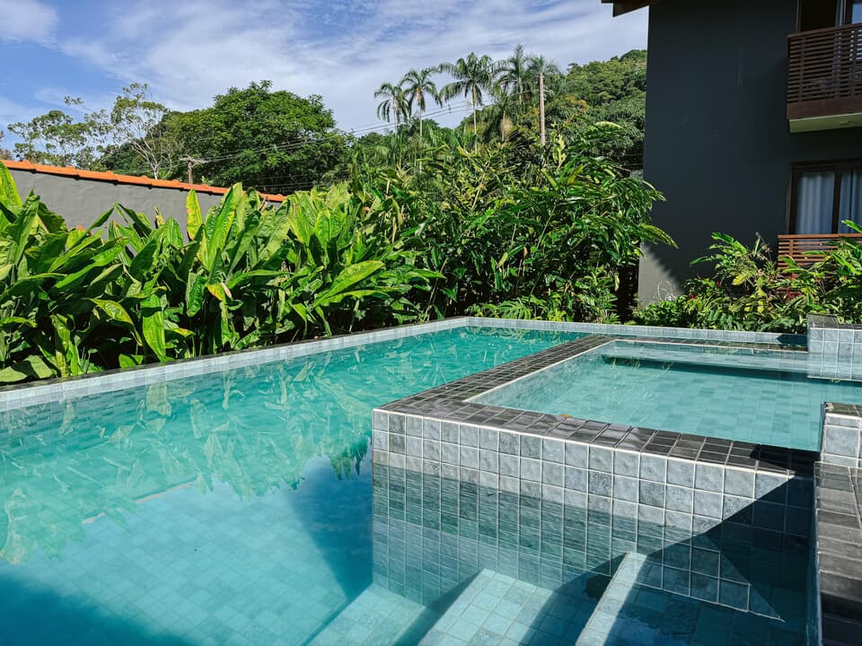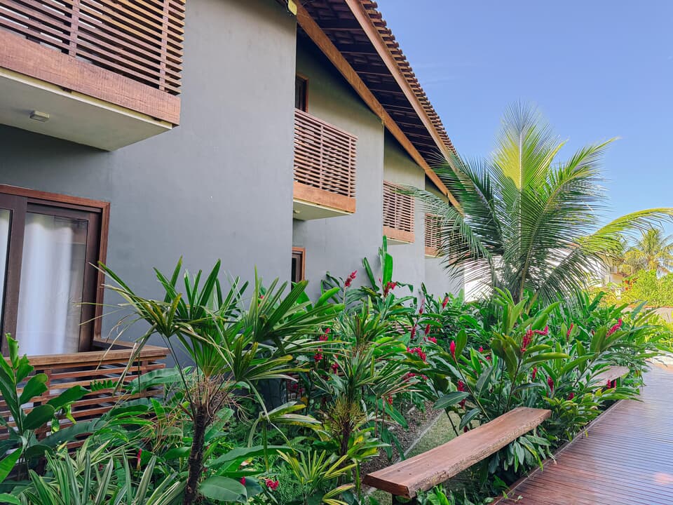 Todos nossos quartos tem varanda com vista para o jardim e nossa maravilhosa piscina com borda infinita.