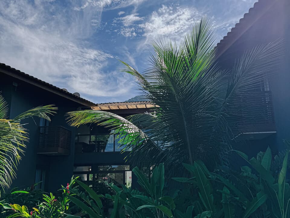 Redário abaixo da sombra de açaizeros, paisagismo com plantas nativas e piscina. Agendamentos de aulas de yoga, massagem, aromaterapia, passeios, mergulhos e quartos com todo conforto que você merece.