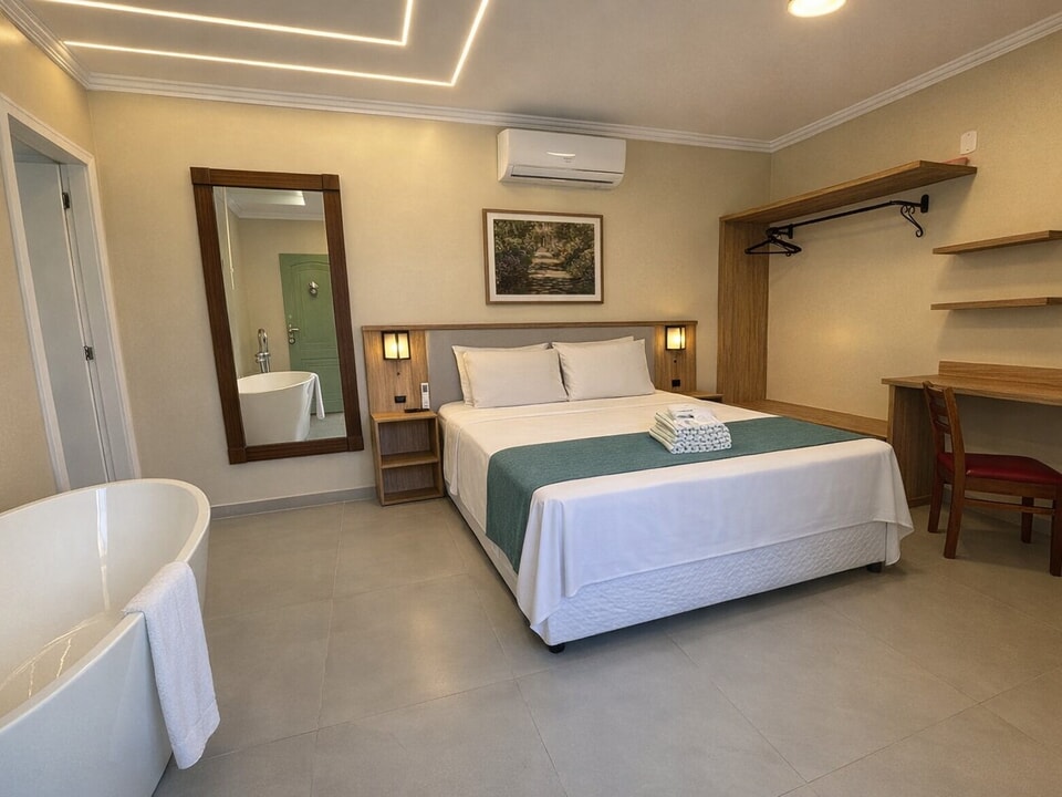 Os quartos da pousada incluem comodidades aconchegantes, com ar-condicionado e TV, além de banheiro privativo. No jardim, você poderá desfrutar de um café da manhã, a refeição é composta de frutas da estação, pães e frios, bem como de bebidas quentes e geladas.