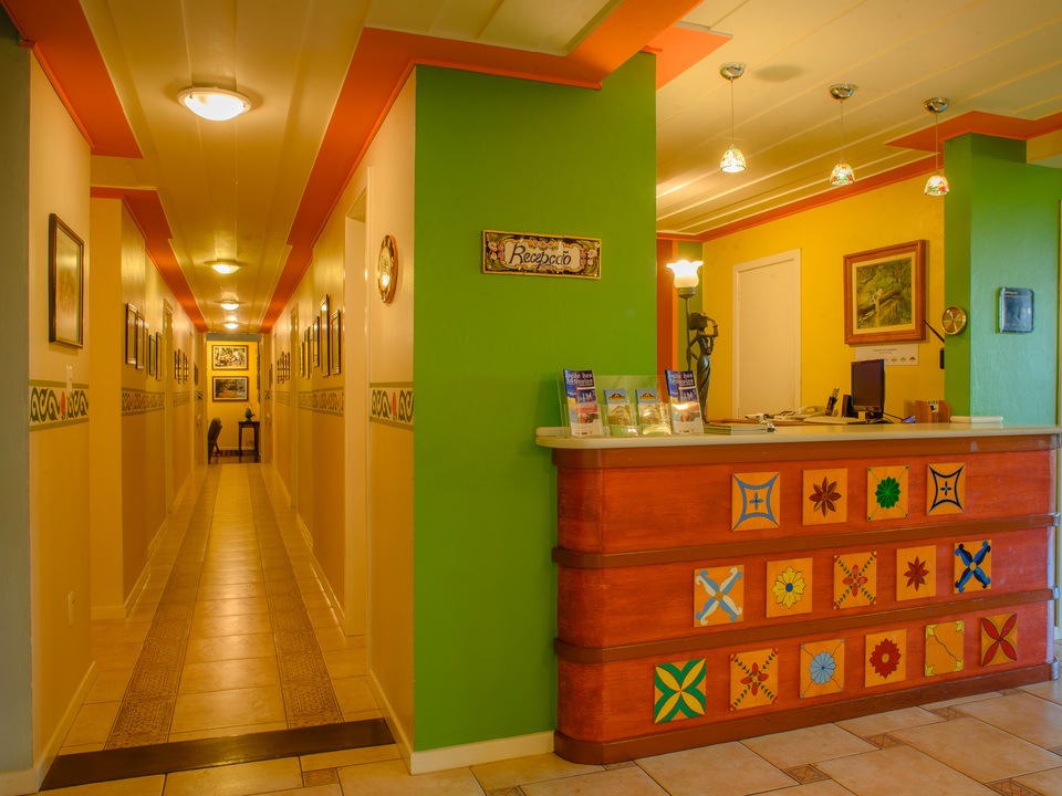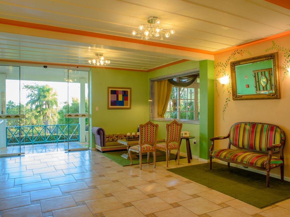 O hotel não dispõe de elevador, sendo os andares superiores acessíveis somente por escadas.