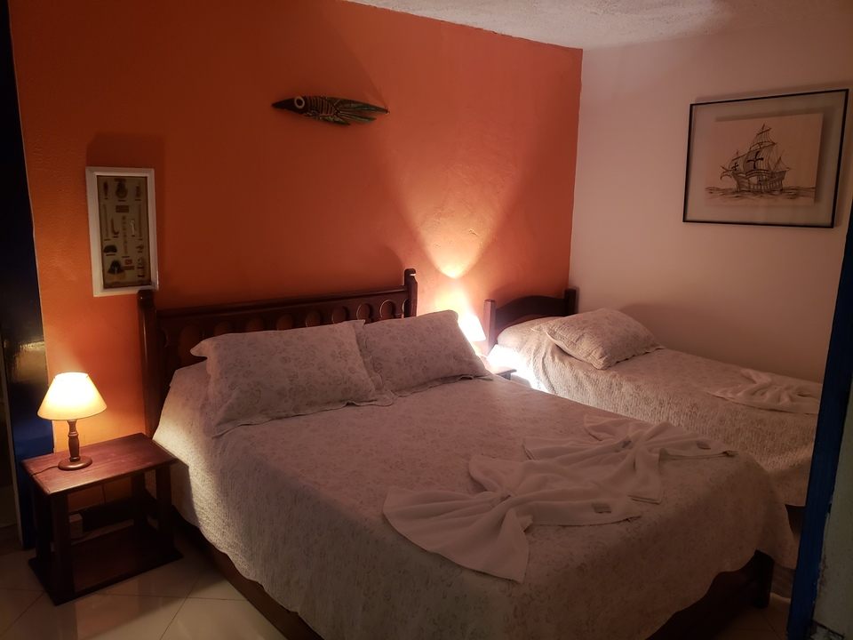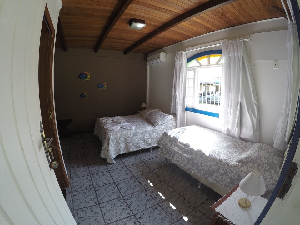 Os quartos da Pousada Aquamaster são bem iluminados, com muita luz natural e peças de decoração local. Todos estão equipados com ar-condicionado, TV, frigobar e varanda privativa.