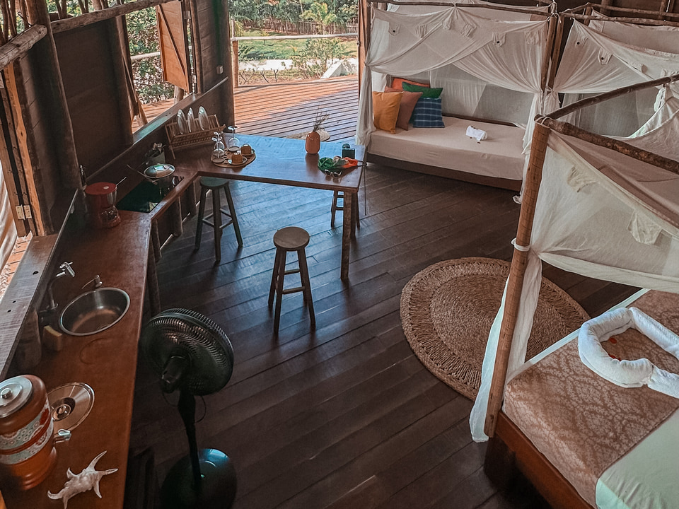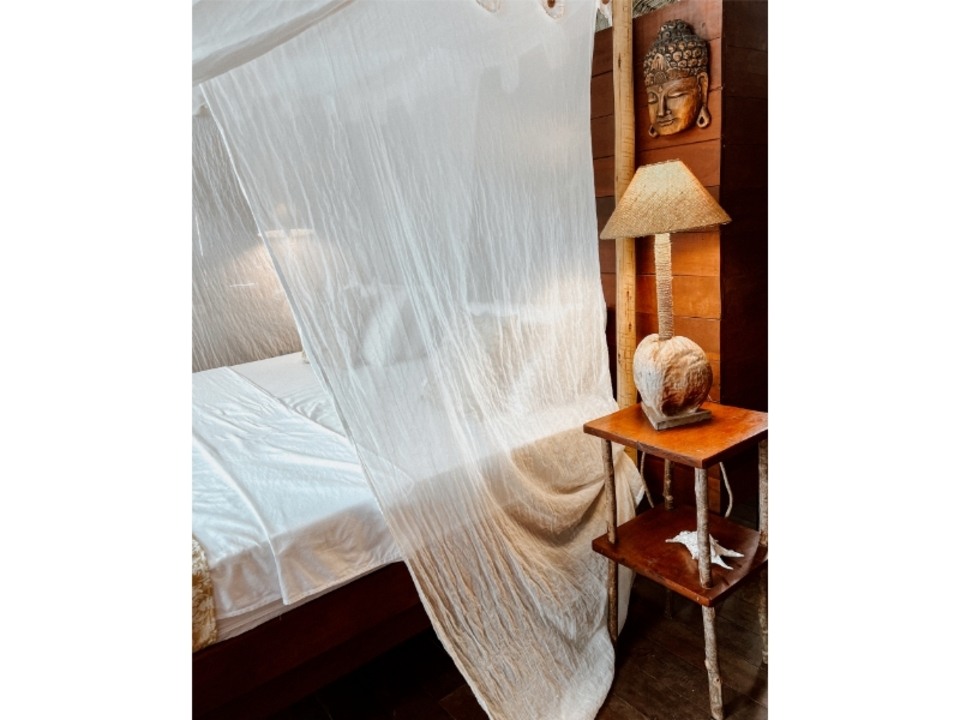 Com uma área de 5.000 m² repleta de coqueiros e cajueiros, o Villa Sabiá oferece bangalôs ecológicos construídos com madeira de reflorestamento e decorados com elementos de Bali, proporcionando uma atmosfera zen e acolhedora.