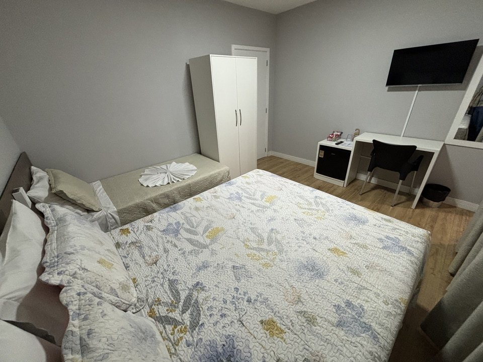 Certificado sslLocalizada em Balneário Camboriú, a 200 metros do centro, a Pousada Al Mare oferece quartos com ar-condicionado e jardim. A propriedade oferece recepção 24 horas, lounge compartilhado e Wi-Fi gratuito em todas as áreas. A pousada dispõe de quartos família. Todos os quartos da pousada incluem guarda-roupa e TV. Um buffet de café da manhã é servido diariamente na Pousada Al Mare. Além disso, você pode jogar tênis de mesa no local. A Pousada Al Mare fica a 700 metros das Ruas Municipais e a 3,7 km do teleférico. O aeroporto mais próximo é o Aeroporto Internacional de Florianópolis - Hercílio Luz, a 91 km da pousada.