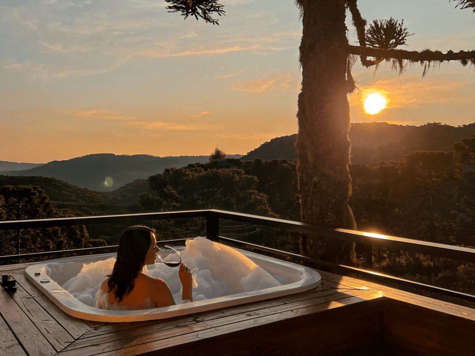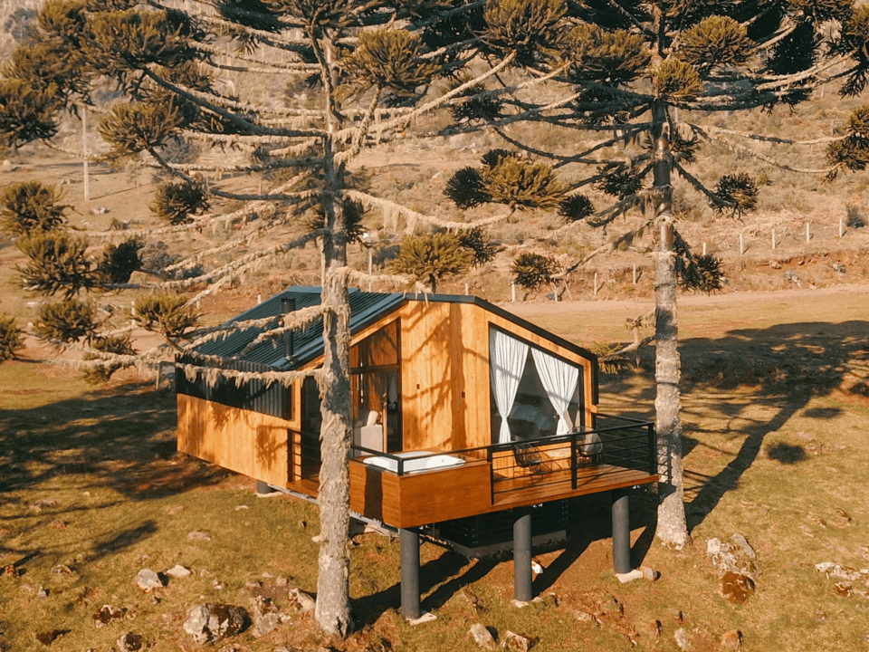 Toda a propriedade é repleta de natureza, cercada com muitas araucárias, contando com um deck suspenso, fogo de chão e varal de luzes, bancos para contemplar a natureza, mesa de piquenique, churrasqueira e o mais incrível de tudo: as cabanas possuem vista exclusiva para a Rota dos Cânions, proporcionando um pôr do sol esplêndido!
