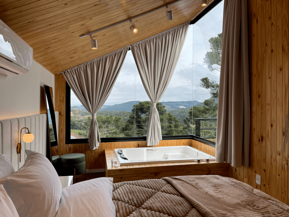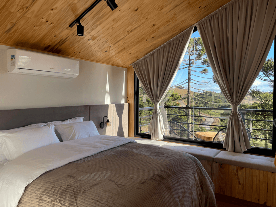 Cada uma delas possui a sua personalidade, tendo em comum a construção moderna que acomoda até 4 pessoas e equipadas com artigos de alto padrão, com aquecimento a gás, banheira de hidromassagem ou jacuzzi externa aquecida, calefator a lenha, ar condicionado, amenities de ótima qualidade, enxoval padrão hotelaria, roupões e toalhas, pois priorizamos o conforto e experiência no local.