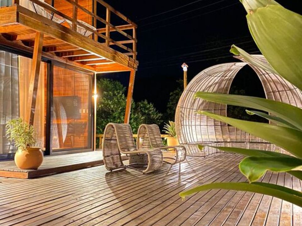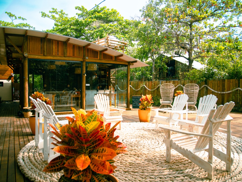 Construída com madeiras nobres de extração controlada, nossa pousada apresenta uma arquitetura inovadora, completamente integrada à natureza local. Somos realmente pé na areia, oferecendo uma estrutura completa de praia com cadeiras, mesas, tendas, toalhas e um serviço exclusivo de atendimento. Além disso, bicicletas e pranchas de stand-up paddle estão disponíveis para uso dos nossos hóspedes.