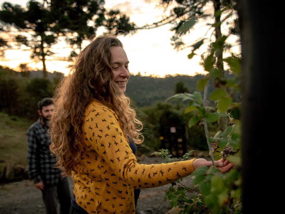 Durante a temporada, hóspedes podem colher livremente frutas, legumes, temperos e ervas da horta orgânica.