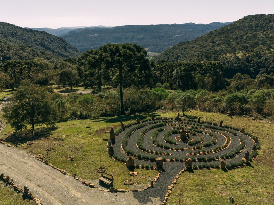 💜 Platô 2: Lavandário e vida rural com araucárias e animais livres.