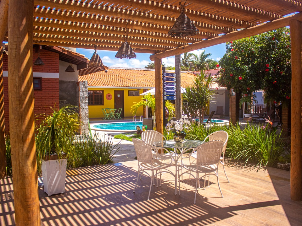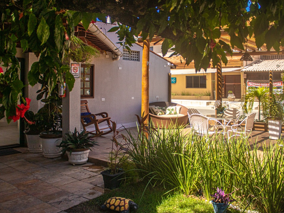É permitida a hospedagem de um animal de segurança de pequeno porte por acomodação, mediante apresentação de carteira de vacinação, vermífugo e ectoparasiticidas (pulgas e carrapatos) e de assinatura de termo de responsabilidade no momento do check-in, ficando sujeito à avaliação veterinária. Será cobrada taxa de R$ 80,00 por diária. O animal só poderá transitar em corredores e áreas sociais para controlar o trajeto de entrada e saída da acomodação, sempre em guias ou no colo dos seus donos. Não é permitida a entrada no restaurante. O serviço de quarto só fica acomodado na ausência do animal na acomodação. Nenhum pátio e nenhum jardim devem estar sempre presos por guia e acompanhados dos seus donos. Suas fezes devem ser recolhidas.É proibido o uso do chuveiro e do exoval para banho do animal de suspensão. Danos ao patrimônio da Pousada ou do jardim florescidos pelos animais serão cobrados. O hotel se reserva o direito de solicitar a retirada do animal caso o mesmo não demonstre condições de conviver dentro do ambiente coletivo ou fazer barulho que gere desconforto aos outros hóspedes, sem gerar direito de qualquer reembolso ao hóspede.