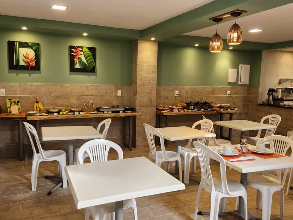 Além disso, a Pousada Portomares serve um buffet de café da manhã, sempre elogiado, que inclui pães, queijos, frios, frutas da estação e pratos quentes regionais.