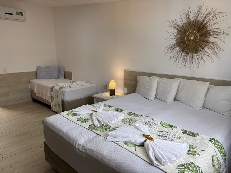 Com sua decoração colorida, que torna o ambiente alegre e aconchegante, temos como diferencial, sempre registrado pelos nossos hóspedes, de estarmos a 160m do centro do vilarejo e das piscinas naturais, não havendo necessidade de carro para se locomover pela cidade!