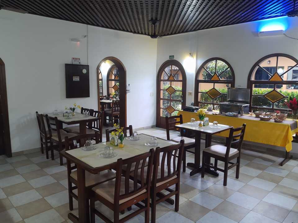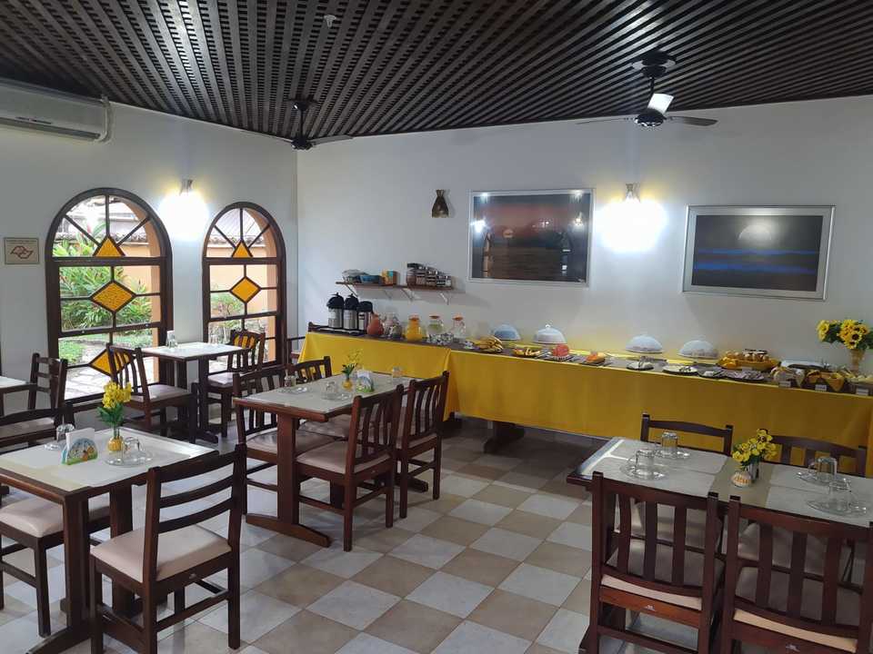 Nas áreas uso comum da pousada fica permitido realizar alimentação somente no salão do café da manhã (durante o horário das 08h às 10h), nas mesas embaixo do toldo verde e na mesa redonda da área da varanda externa, a alimentação nas mesas em volta da piscina é permitido desde que não tenha objetos de vidro, porcelanas ou qualquer objeto que possa ser quebrado prejudicando a utilização da piscina.
