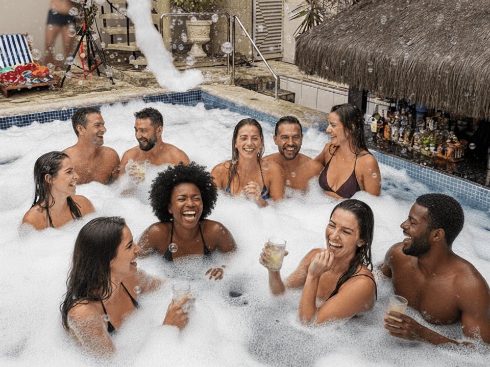 Nossa programação de finais de semana inclui happy hours, boate, pool parties com banho de espuma, DJ e animação.