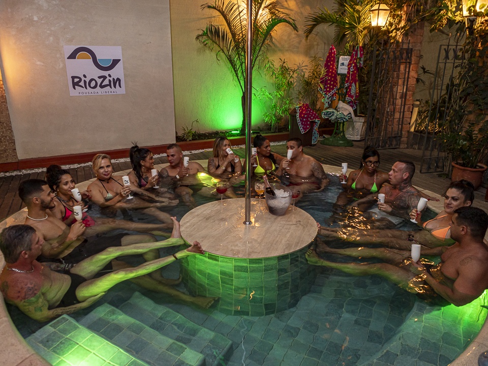 Na RioZin a NUDEZ É OPCIONAL (clothing optional) e as atividades sexuais são permitidas em algumas áreas da pousada (piscina, jacuzzi, boate, labirinto, glory hole, darkroom....).