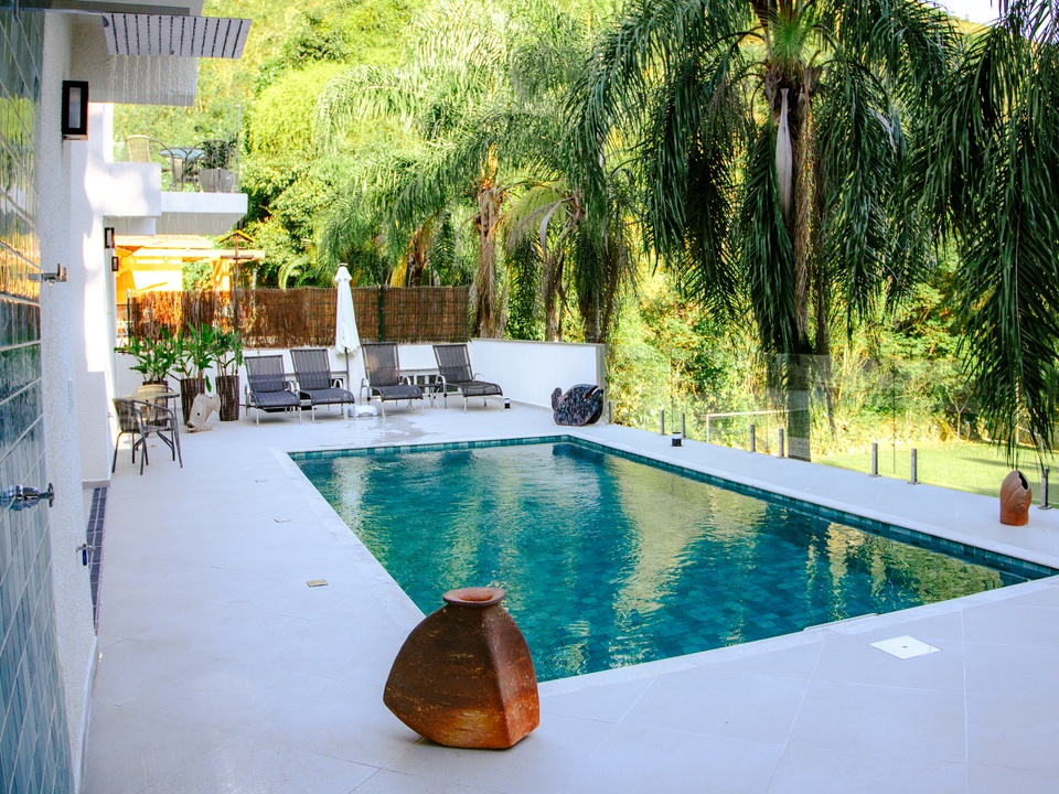Uso das instalações: Solicitamos que as regras de uso de áreas comuns sejam seguidas. Atente-se também aos avisos relacionados ao uso da banheira, visando evitar qualquer dano ao equipamento. Para maior segurança de todos, não é permitido utensílios e garrafas de vidro na piscina, taças de acrílico estarão disponibilizadas nos quartos para uso na piscina. O uso da piscina é liberado até às 22h.