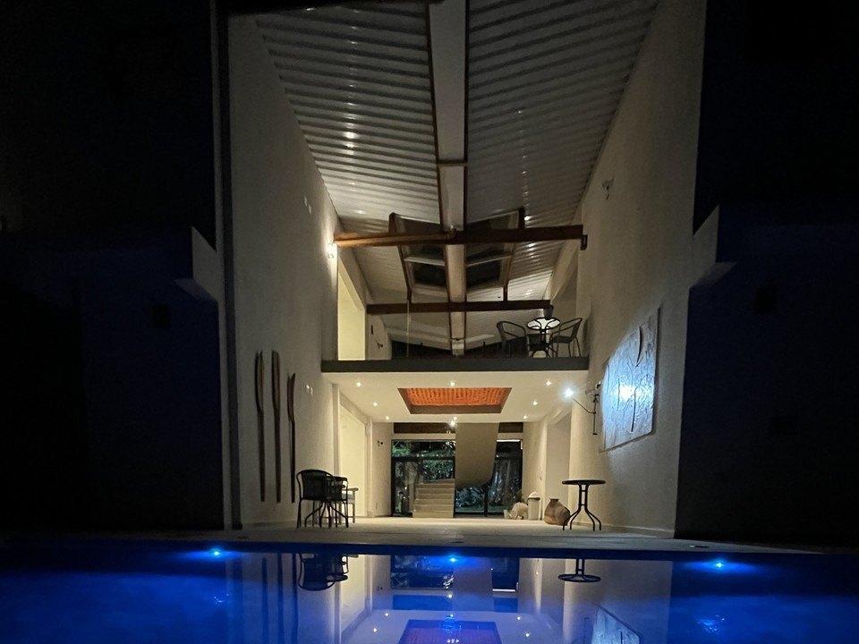 Nossa Beach House possui um hall amplo, espaçoso e arejado com vista para a piscina na área Térrea. Já no andar superior, o hall possui uma rede de descanso ótima para relaxar.