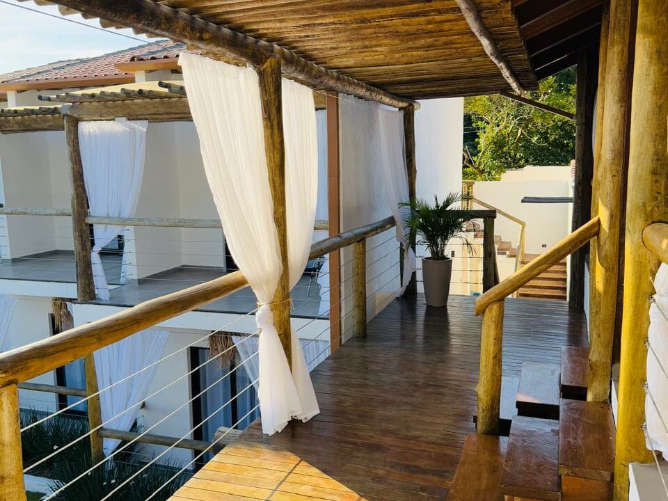 Nossas acomodações são amplas, arejadas e confortáveis. A maioria das suítes possui uma vista deslumbrante para o mar, tornando cada amanhecer e entardecer ainda mais especiais.