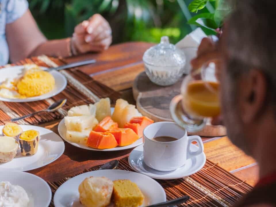 Todas as manhãs, desfrute de um delicioso café da manhã servido com carinho, repleto de sabores regionais , enquanto aprecia o canto dos pássaros que tornam a experiencia ainda mais inesquecível.