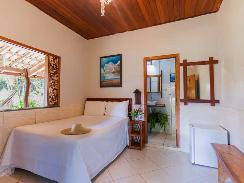 Com um ambiente acolhedor e sofisticado, a pousada oferece suítes e bangalôs confortáveis, todos equipados com varanda privativa com rede, ar-condicionado, TV smart, frigobar, banheiro privativo e secador de cabelo, proporcionando uma estadia relaxante e completa.