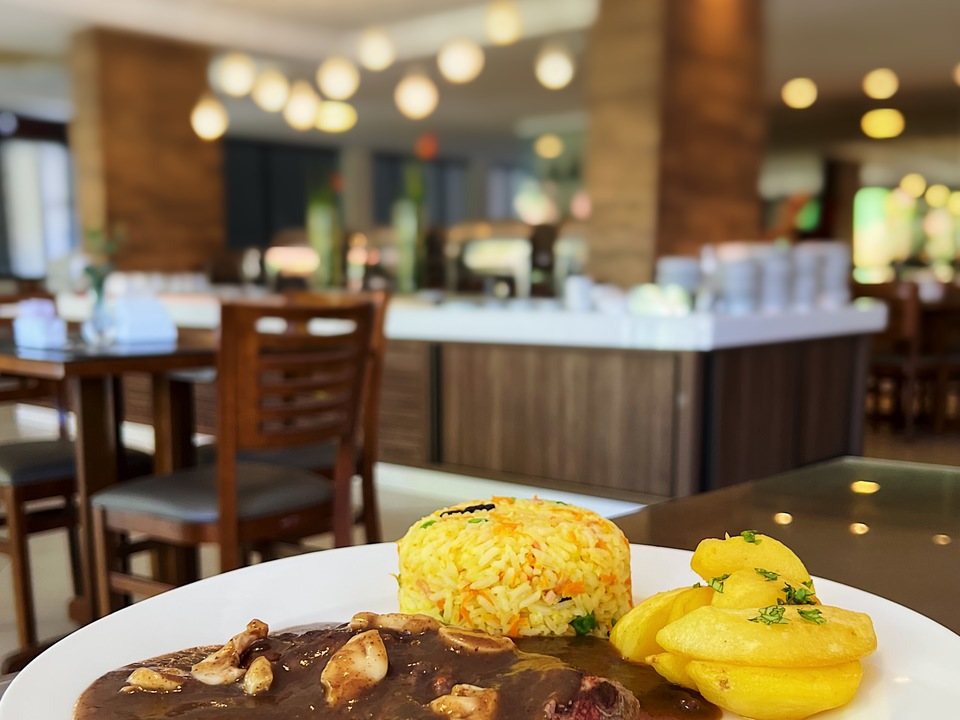 12. O café da manhã está incluso na diária e será servido no Restaurante do Hotel, das 6h30min às 10h00min. Dispomos de almoço a La carte das 12h00min às 14h30min e jantar também a La carte das 18h00min às 21h30min.