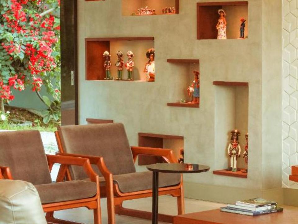 Mesmo às margens da BR 232, o hotel é tranquilo e silencioso, uma vez que sua localização fica na via local paralela, com edificação distante da BR, devido ao recuo considerável que a mesma obedece, oferecendo assim um conforto acústico e consequentemente um sono agradável.