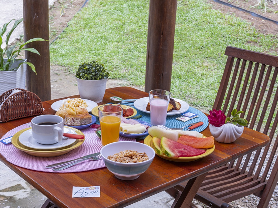 Aqui na Aysú, cada detalhe foi pensado para oferecer um ambiente rústico, com toques simples e acolhedores, integrados ao clima natural. Todos os quartos são climatizados, equipados com camas confortáveis, Wi-Fi gratuito, TV a cabo, frigobar e banheiro privativo. Muitos de nossos quartos também possuem varandas com rede, onde você pode relaxar ao som da vida selvagem e sentir a brisa fresca da Mata Atlântica.