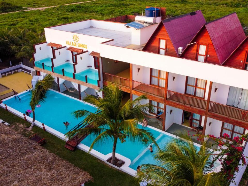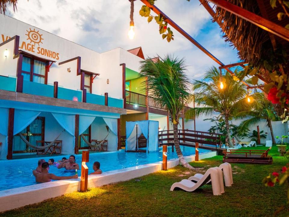 Pousada Aconchegante ,Village Sonhos, localizada em Camocim (Ceará), oferece uma experiência acolhedora e tranquila para quem busca o sossego do litoral. Com uma atmosfera rústica e charmosa, ela dispõe de confortáveis bangalôs e chalés equipados com ar-condicionado e varanda. A pousada conta com uma área de lazer agradável que inclui piscina e jardim, ideal para relaxar após um dia explorando as belezas naturais da região, como as praias e dunas. O café da manhã é caseiro e variado, garantindo um ótimo começo de dia. Queremos que a sua experiência conosco seja inesquecível e que você volte logo em breve com os seus amigos e parentes!