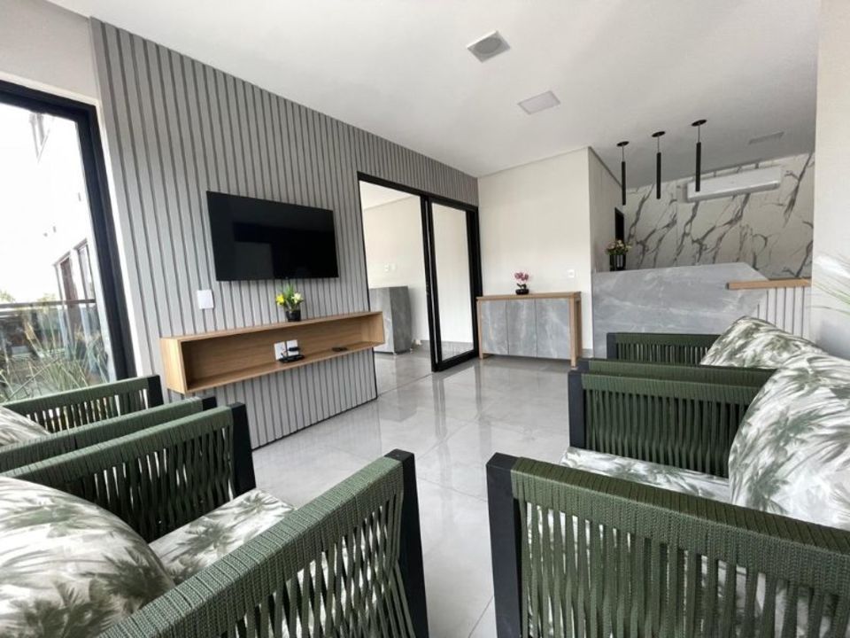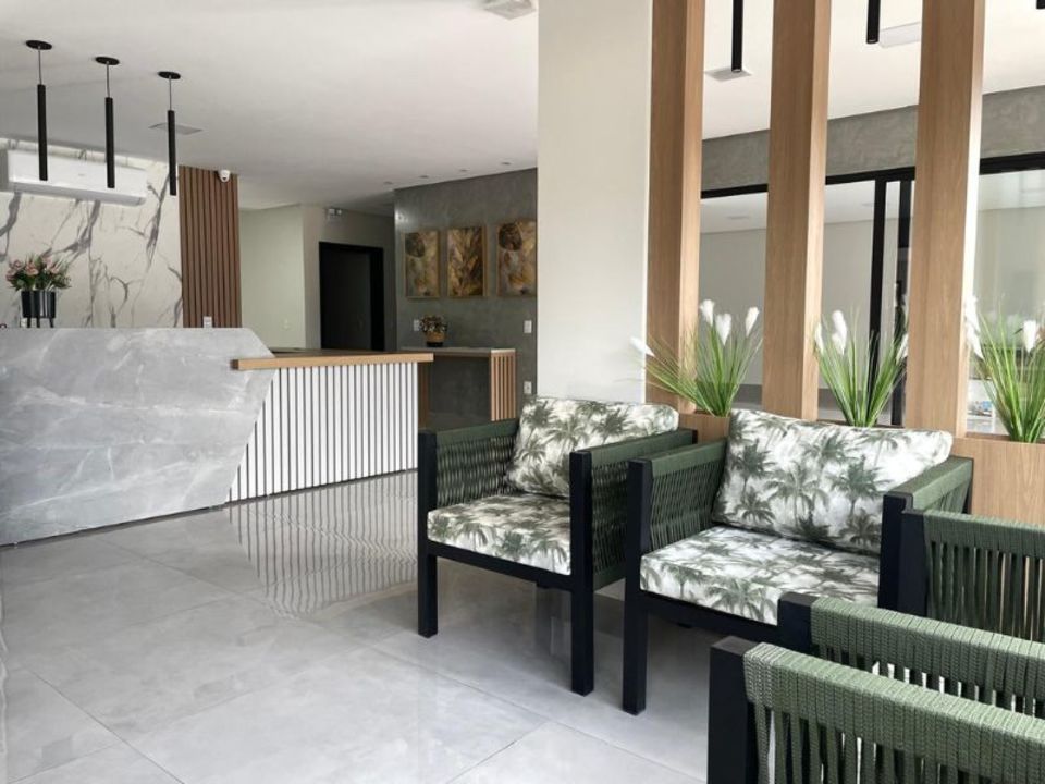 Apartamentos equipados com: piso LAMINADO, cama box, ar condicionado, frigobar, televisão Led, internet Wi-fi.