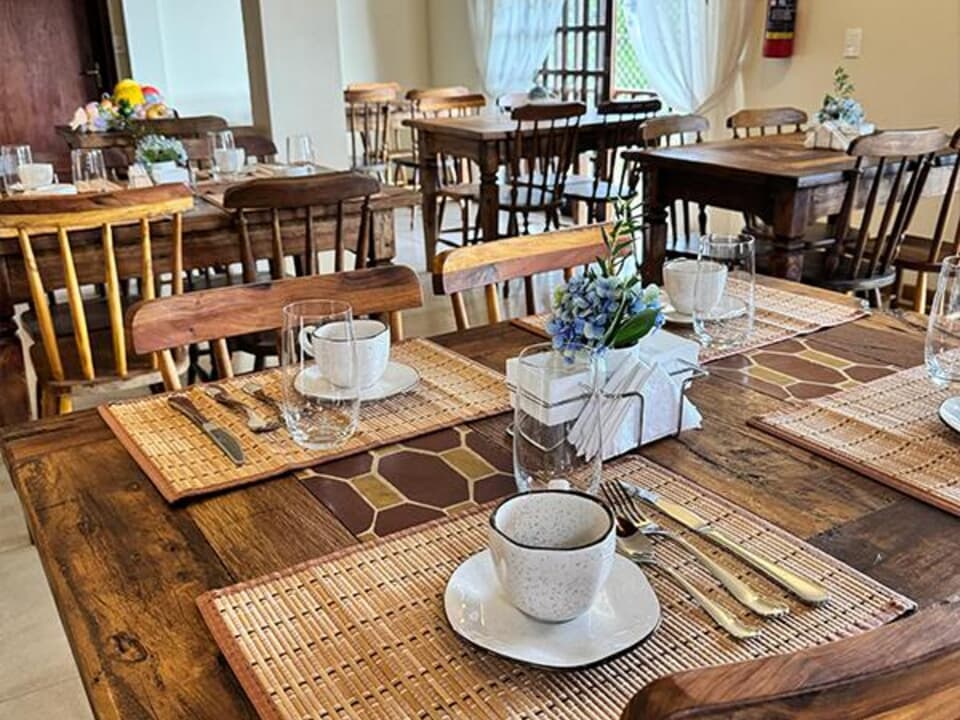 Construída com muito amor e dedicação pelos proprietários, nossa pousada é um reflexo de sua paixão pela hospitalidade. Todos os móveis foram cuidadosamente feitos de madeira reciclada, trazendo um estilo rústico único que harmoniza perfeitamente com o ambiente acolhedor.