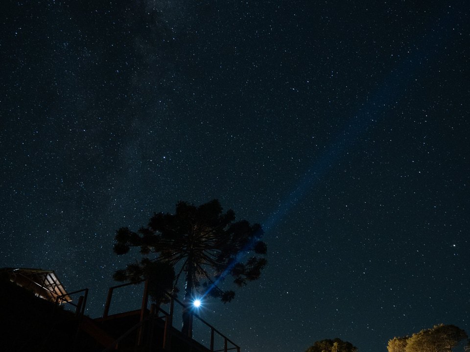Estamos praticamente dentro do Parque Nacional São Joaquim. São 50.000 hectares de florestas intocadas, com mais de 120 espécies de pássaros catalogados, que nos visitam o ano todo. O canto dos pássaros é o único som alto permitido, para felicidade e conforto dos nossos queridos hóspedes.