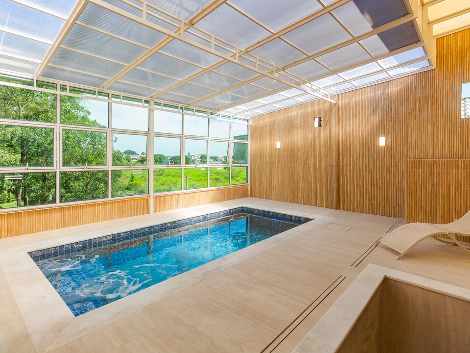 A piscina está localizada no rooftop, de uso exclusivo mediante reserva prévia.