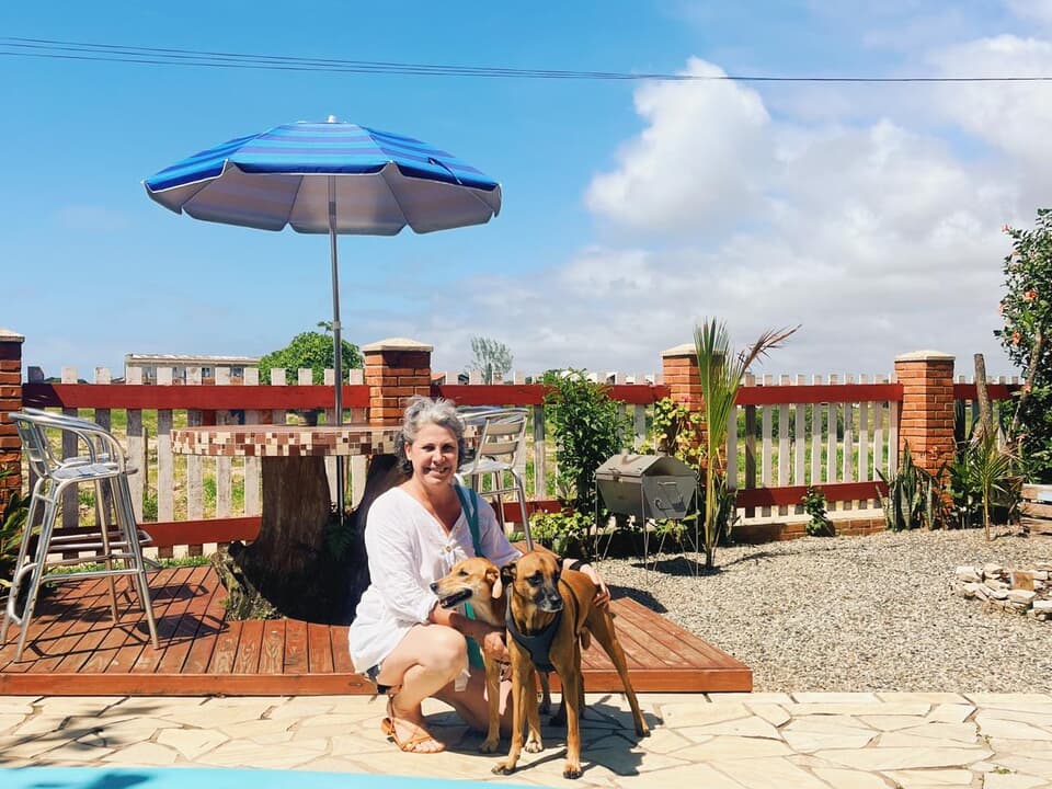 A pousada possui duas cachorras dóceis que circulam nas áreas comuns.