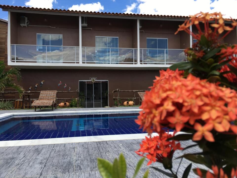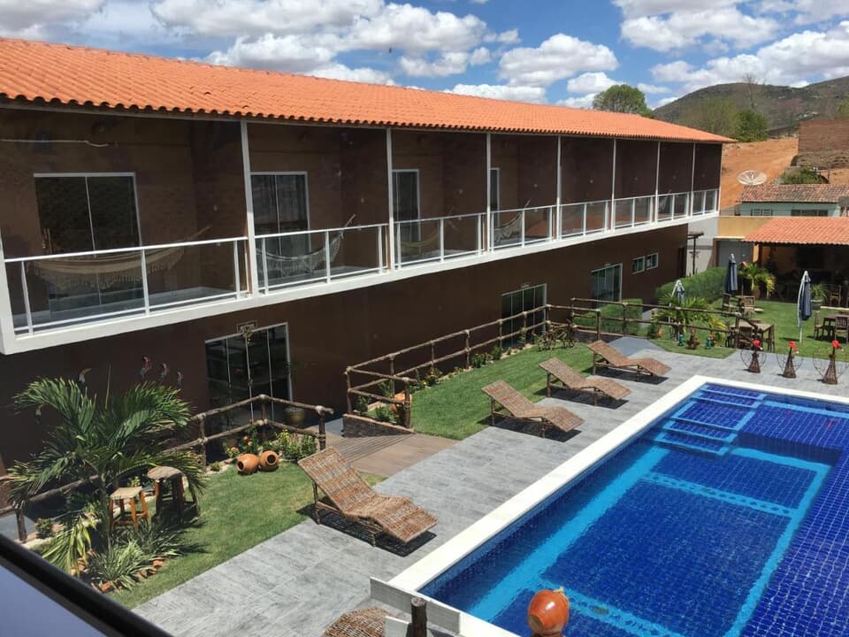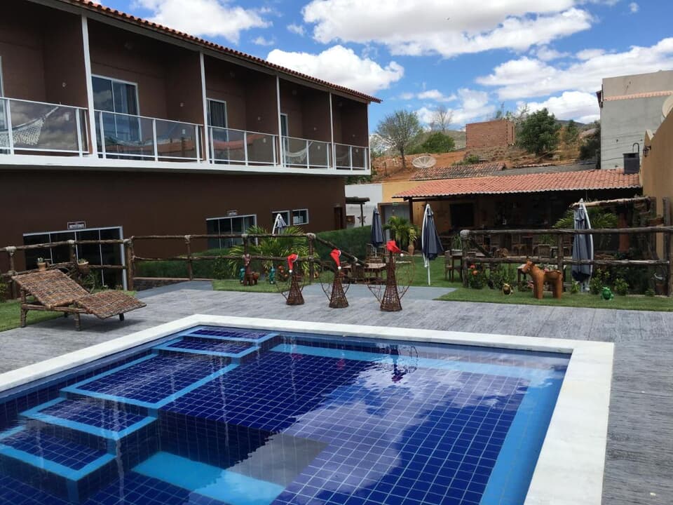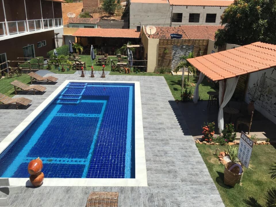Localizado em um ambiente acolhedor e tranquilo, nosso hotel é o destino ideal para quem busca descanso, beleza e hospitalidade. Contamos com uma ampla área de lazer com piscina cristalina, rodeada por um belo jardim e espaços aconchegantes para você relaxar com estilo.